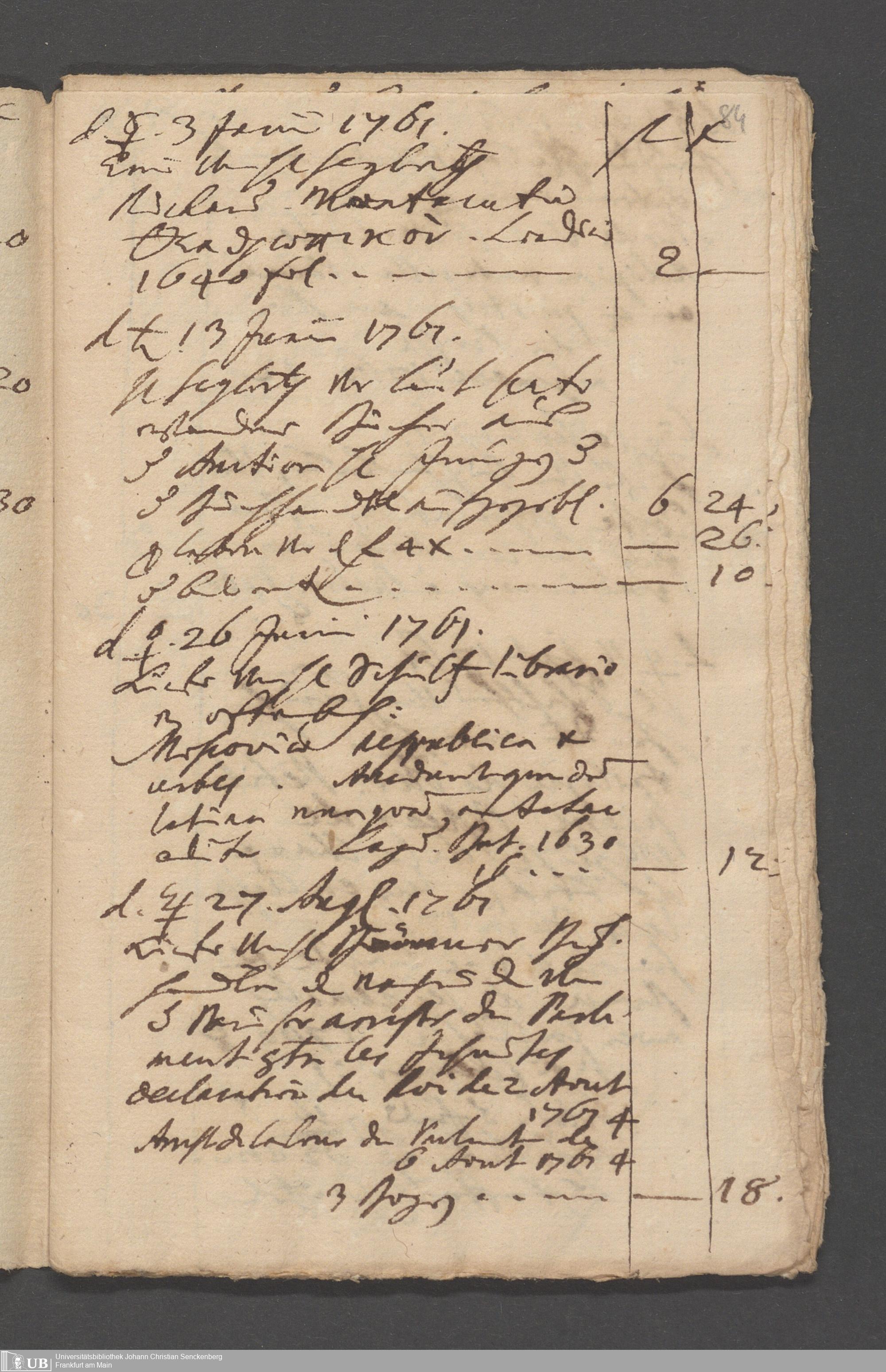 Na 31 Nachlass Johann Christian Senckenberg, 215 - Aufzeichnungen über Bücherkäufe und Schenkungen