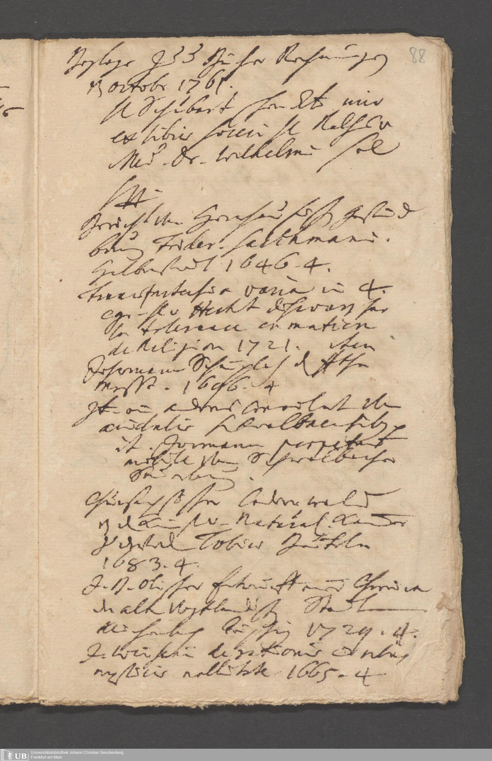 Na 31 Nachlass Johann Christian Senckenberg, 215 - Aufzeichnungen über Bücherkäufe und Schenkungen