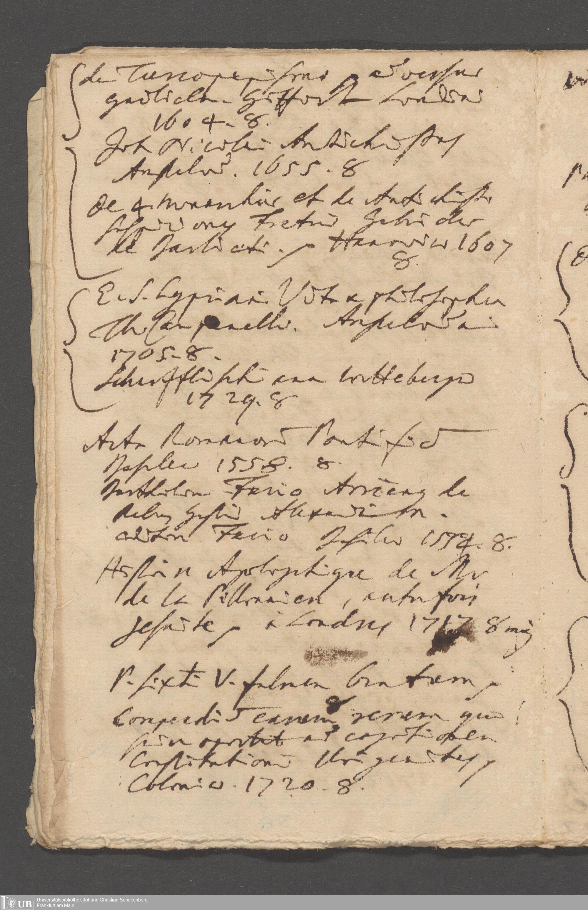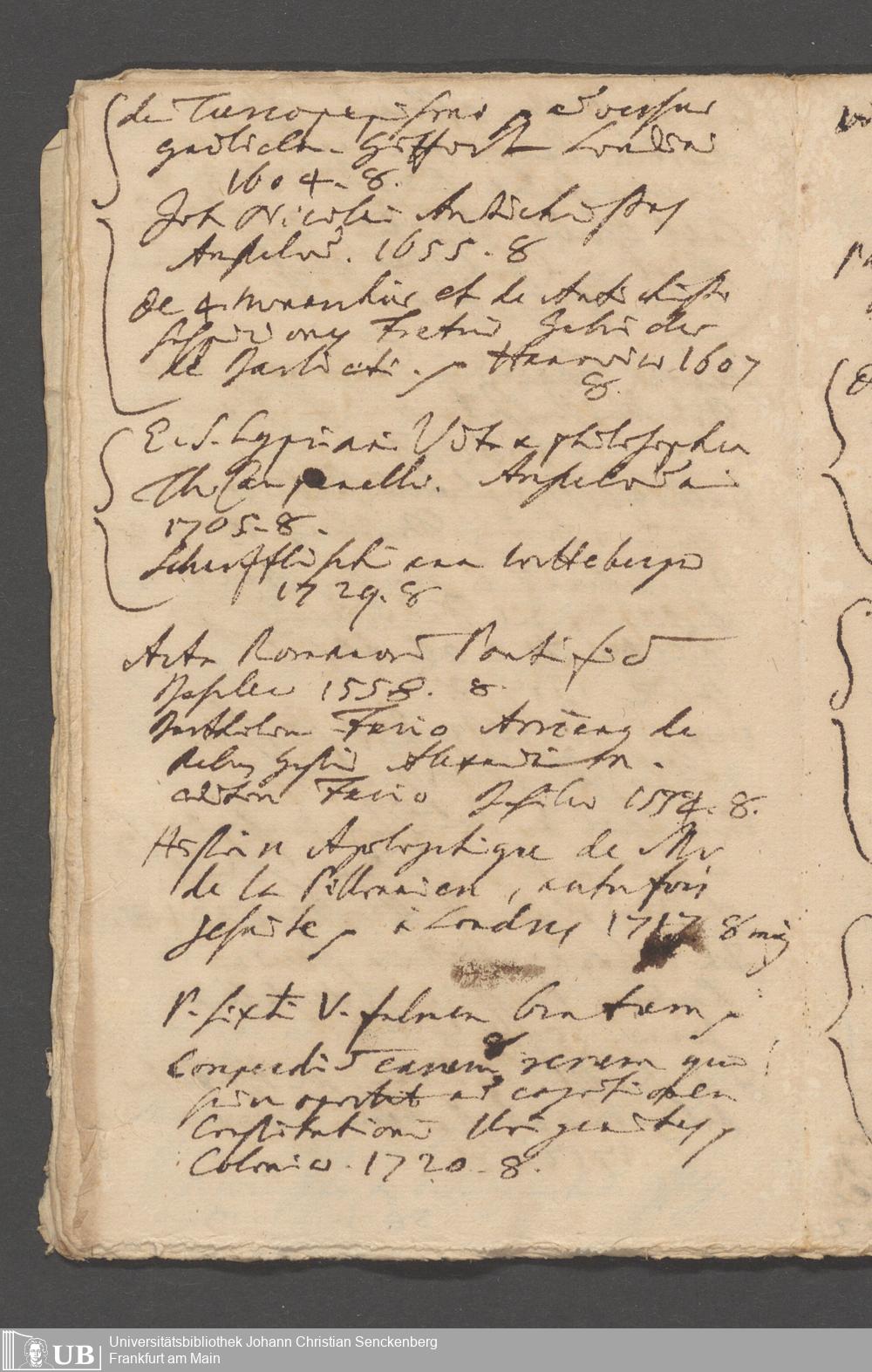 Na 31 Nachlass Johann Christian Senckenberg, 215 - Aufzeichnungen über Bücherkäufe und Schenkungen