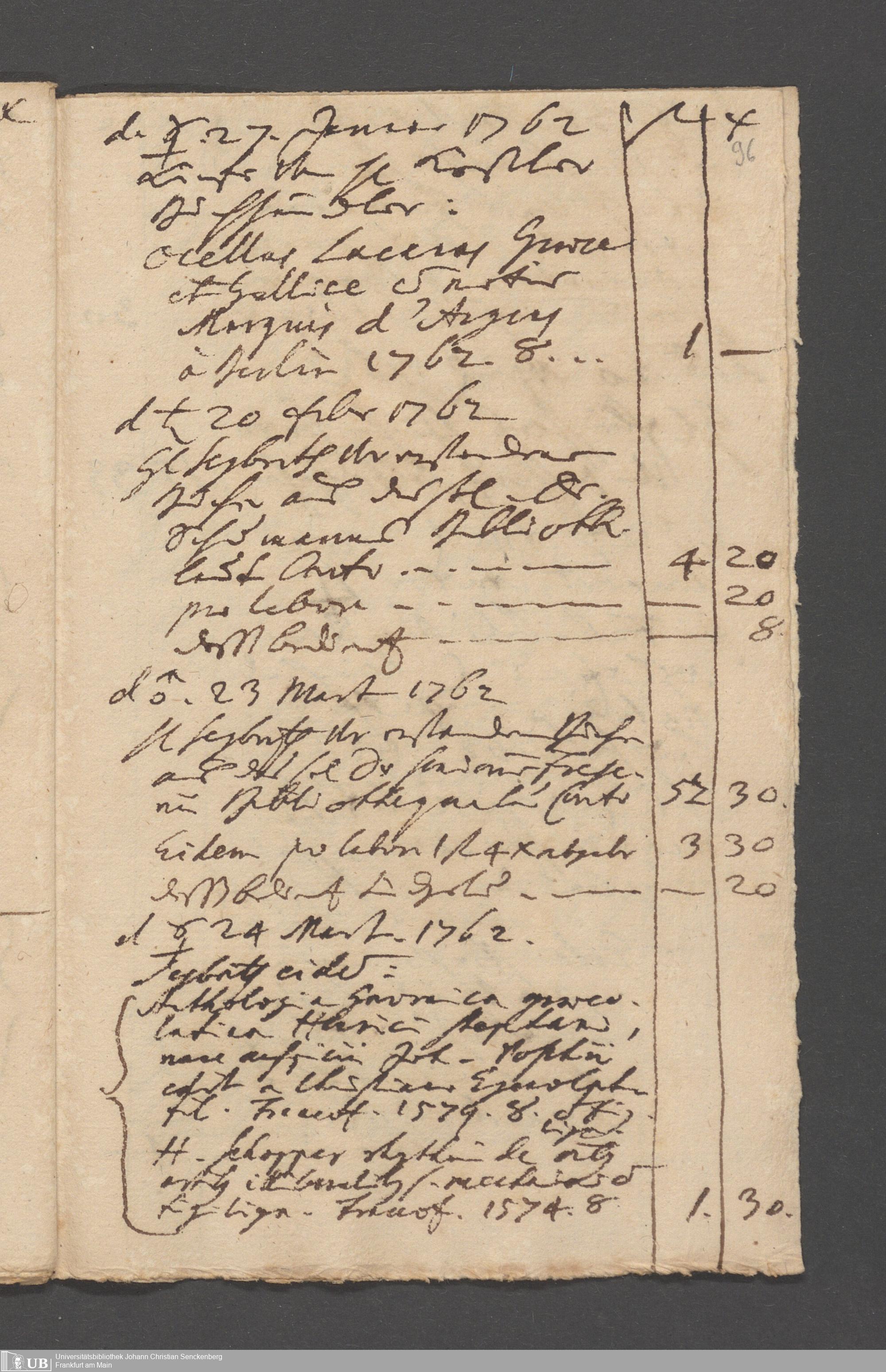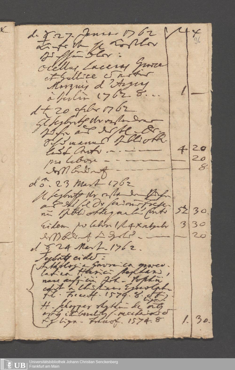 Na 31 Nachlass Johann Christian Senckenberg, 215 - Aufzeichnungen über Bücherkäufe und Schenkungen