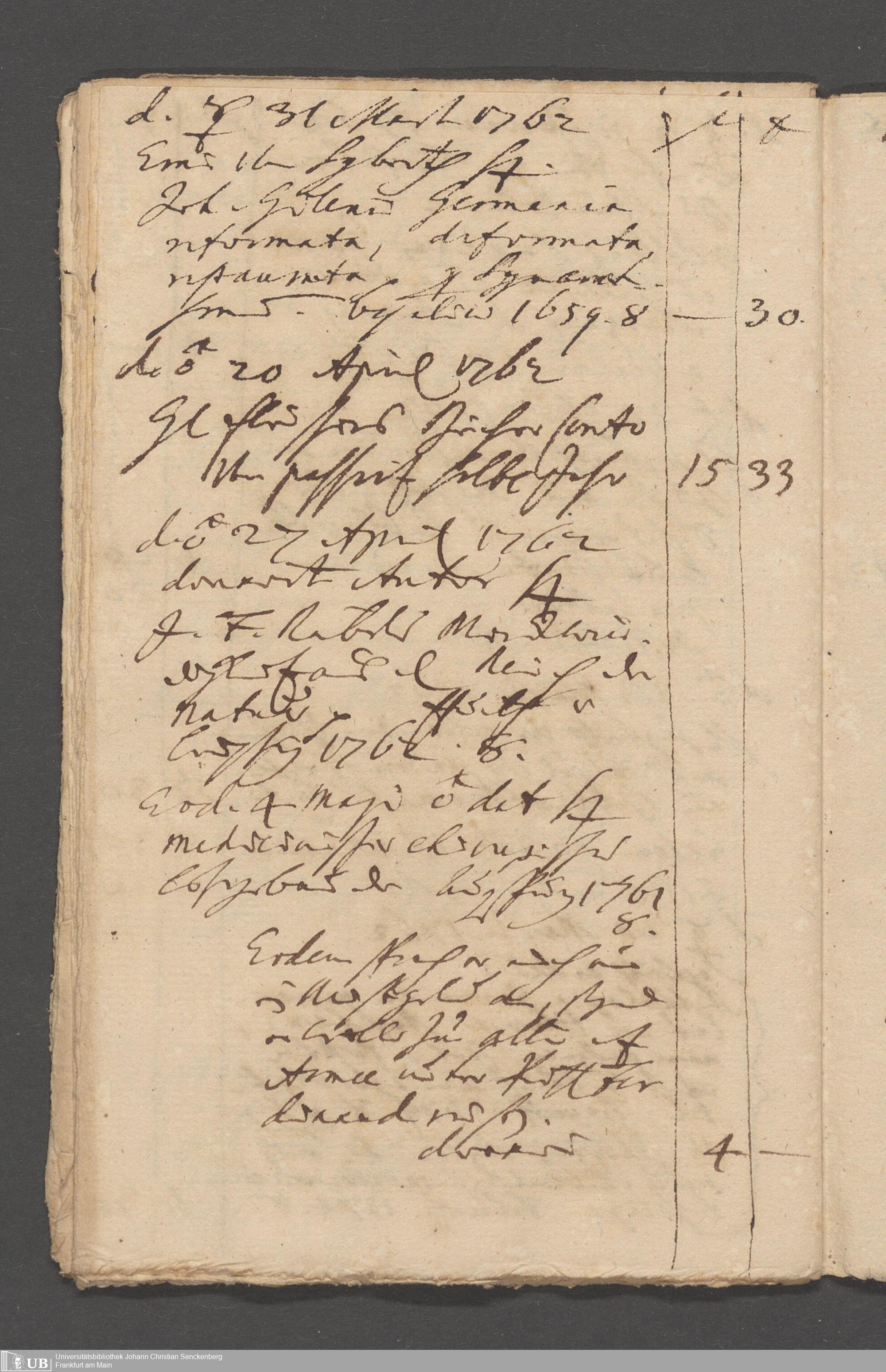 Na 31 Nachlass Johann Christian Senckenberg, 215 - Aufzeichnungen über Bücherkäufe und Schenkungen