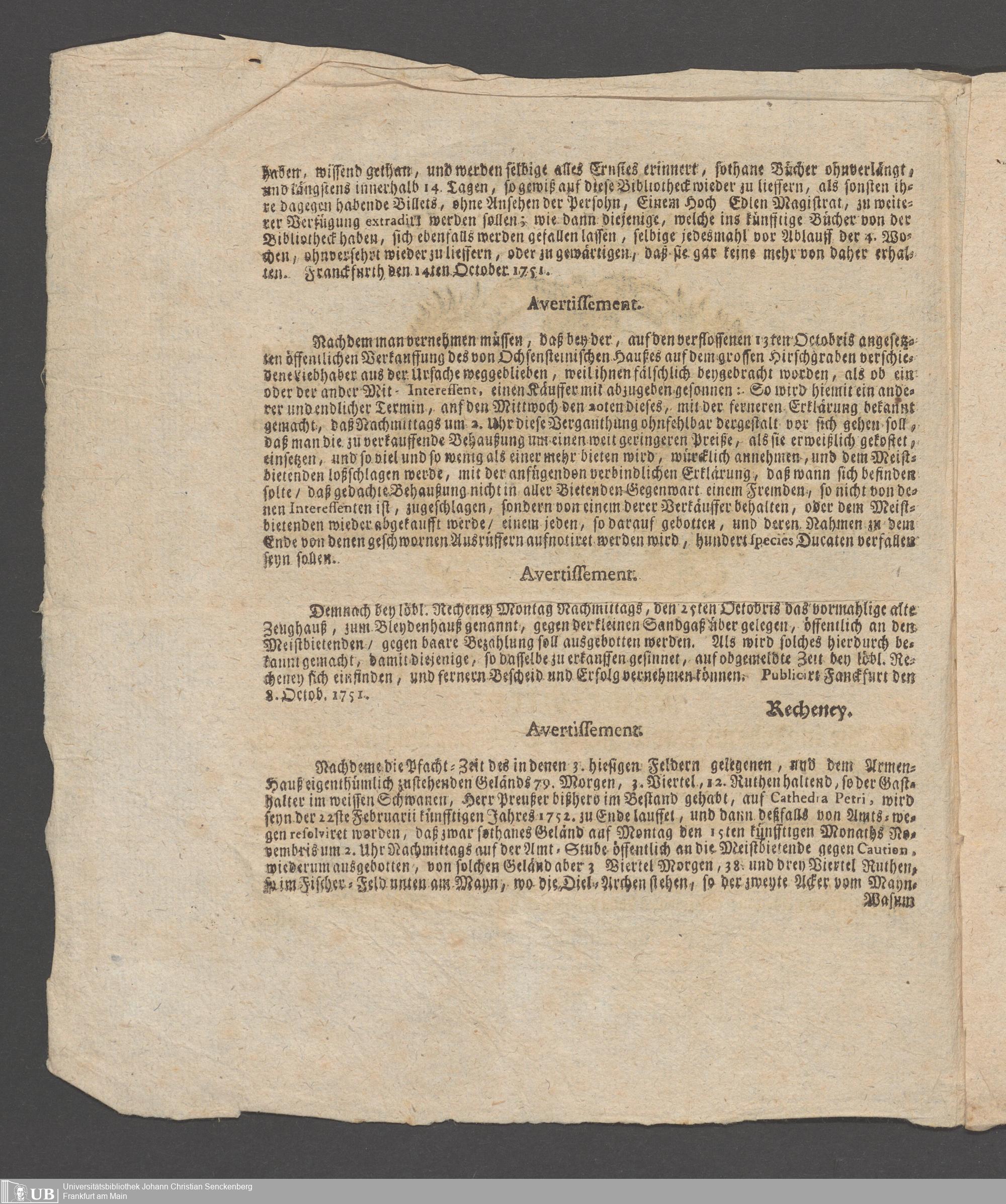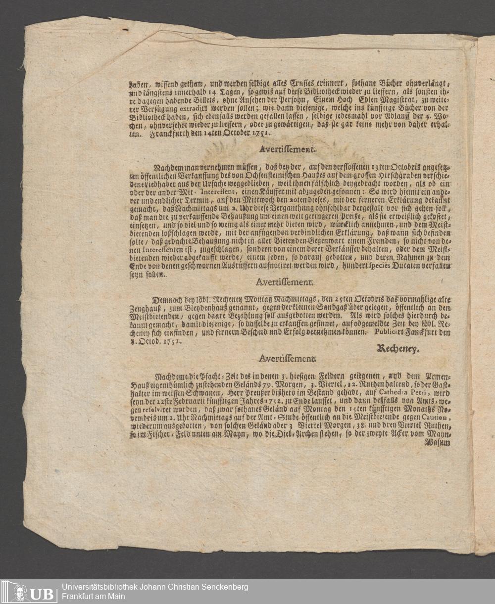 Na 31 Nachlass Johann Christian Senckenberg, 216 - Einhaltung der Bibliotheksordnung