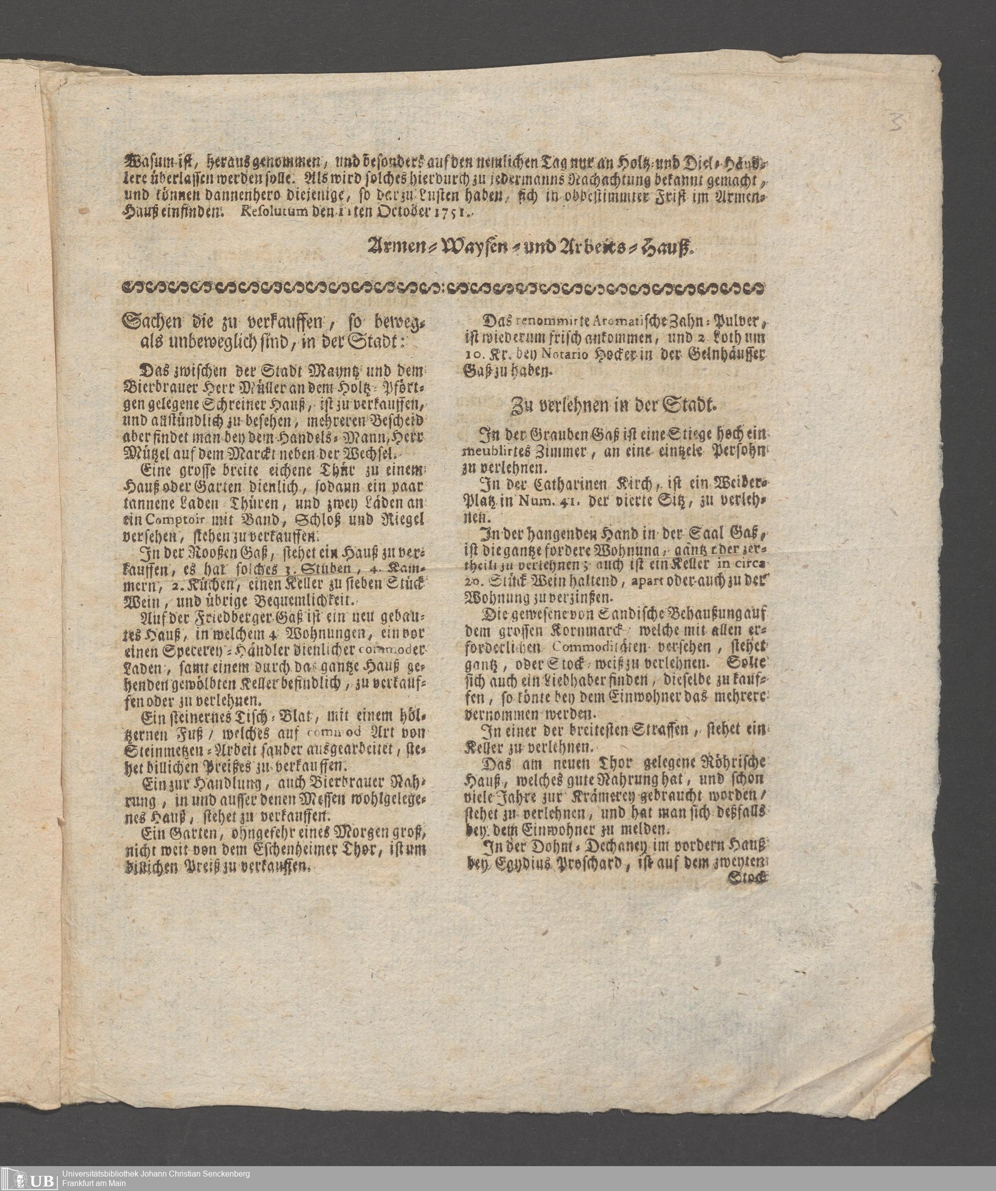 Na 31 Nachlass Johann Christian Senckenberg, 216 - Einhaltung der Bibliotheksordnung