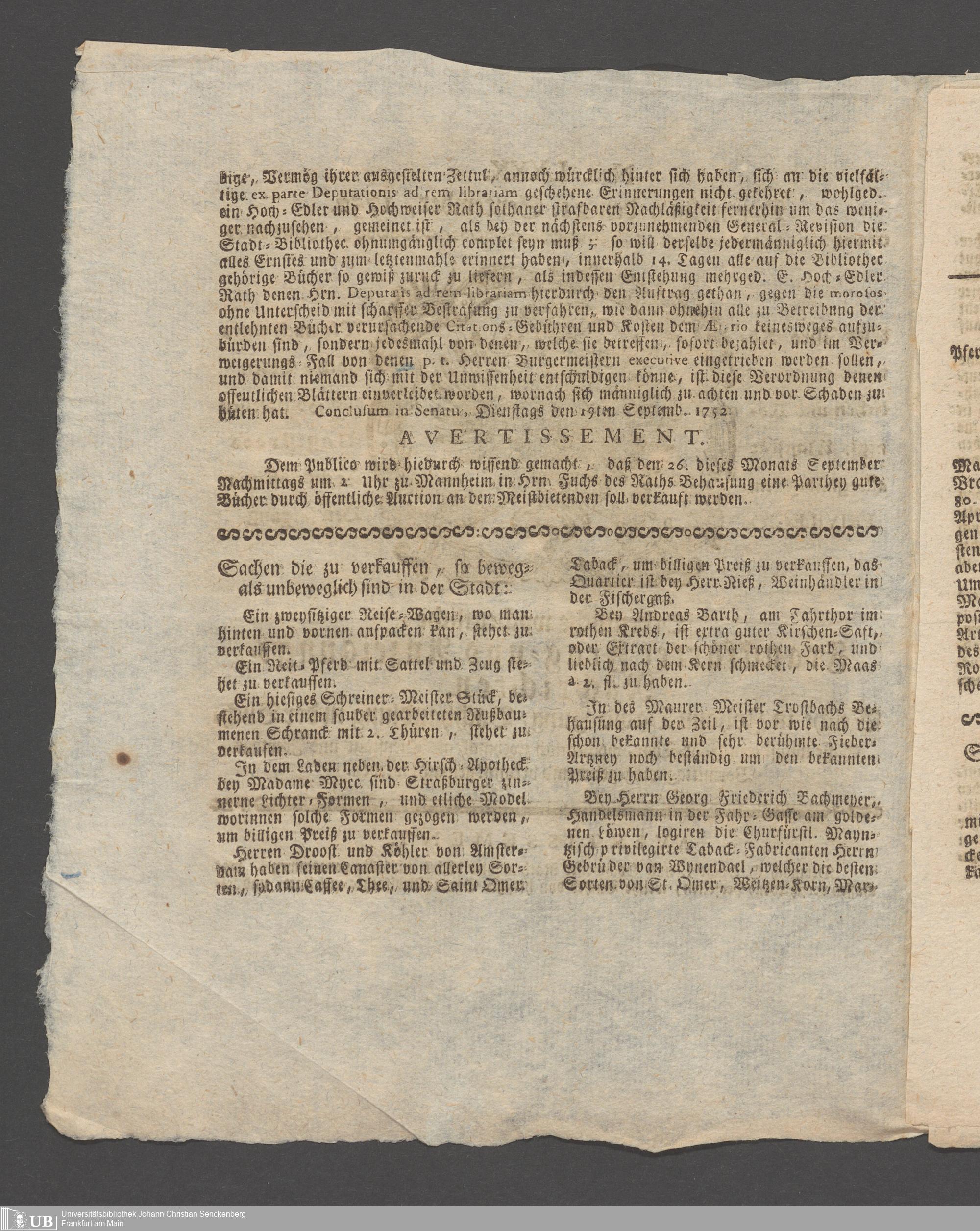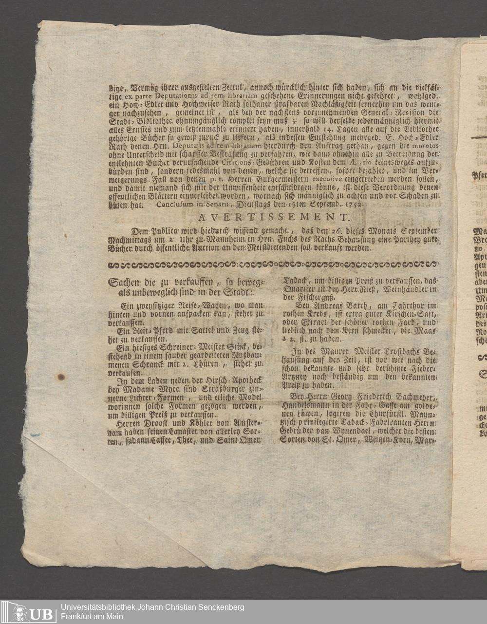 Na 31 Nachlass Johann Christian Senckenberg, 216 - Einhaltung der Bibliotheksordnung