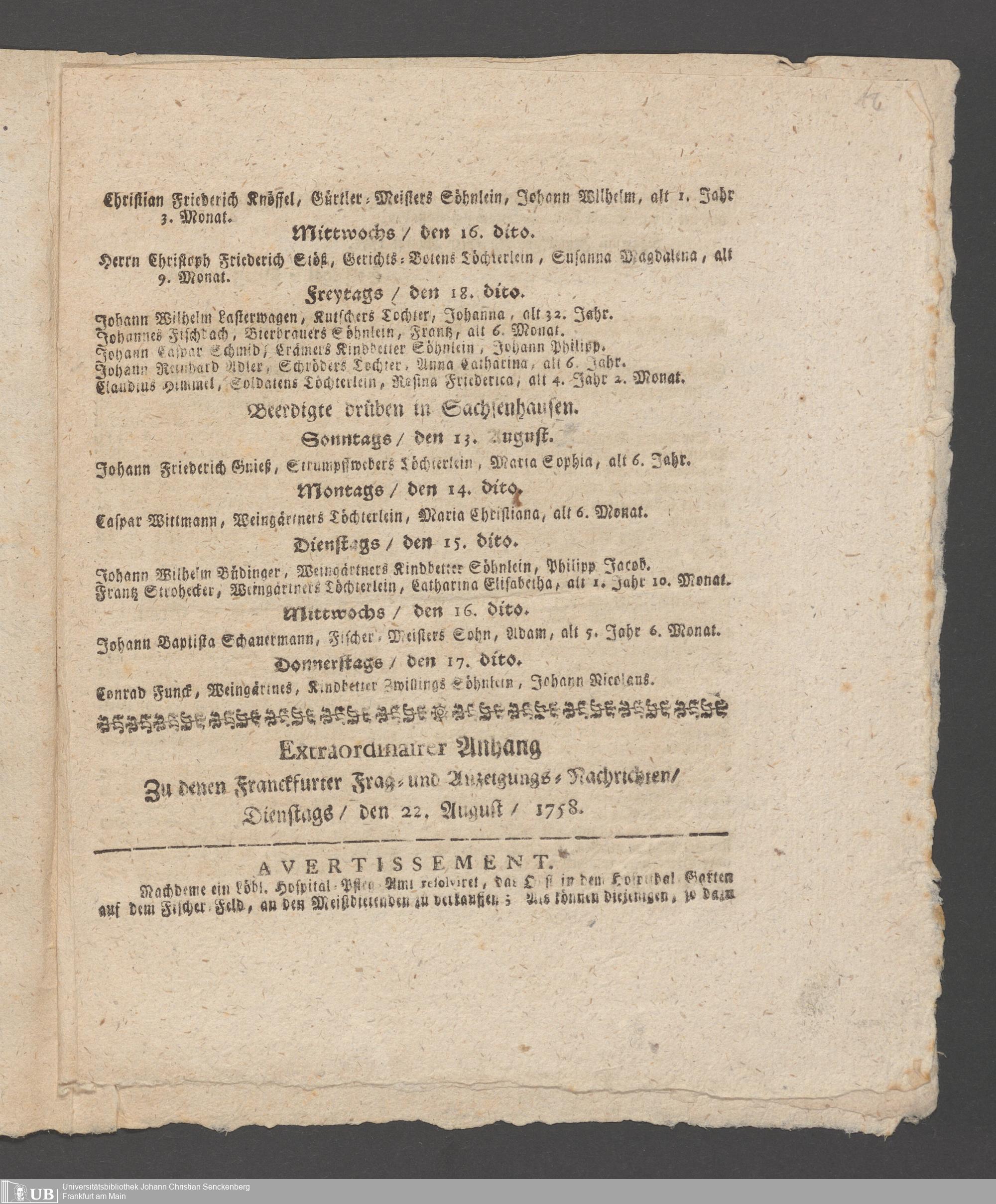 Nachlass Johann Christian Ehrmann