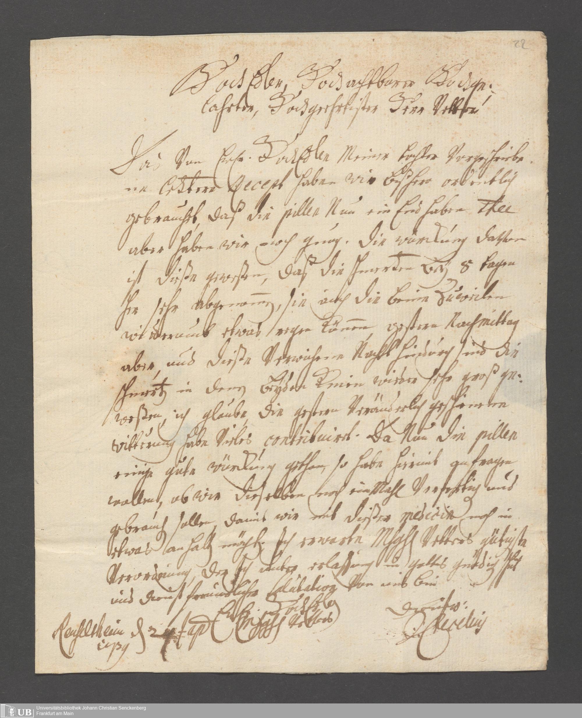 Na 31 Nachlass Johann Christian Senckenberg, 221 - Briefe von Crecelius