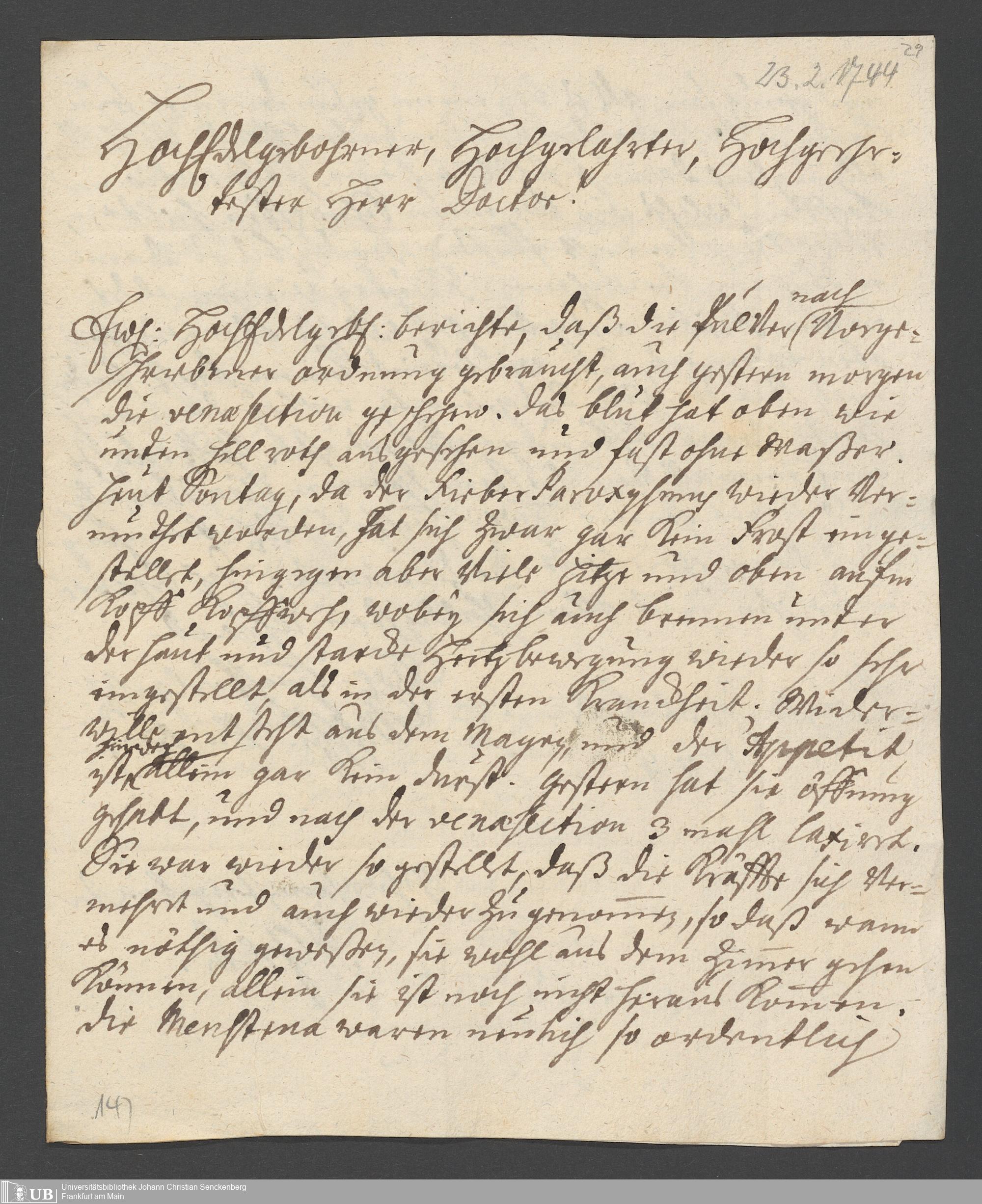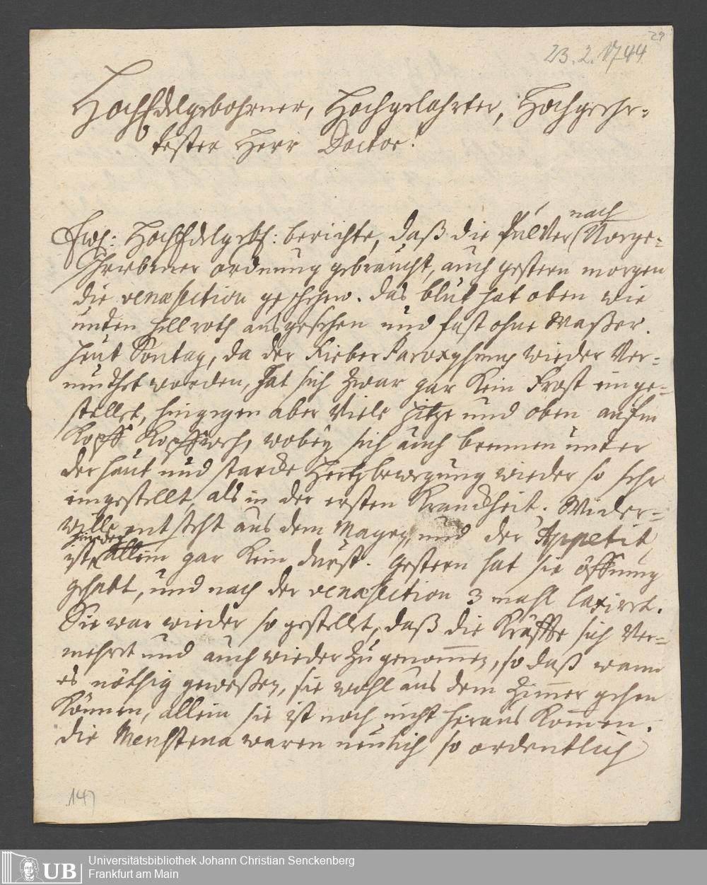 Nachlass Johann Christian Senckenberg