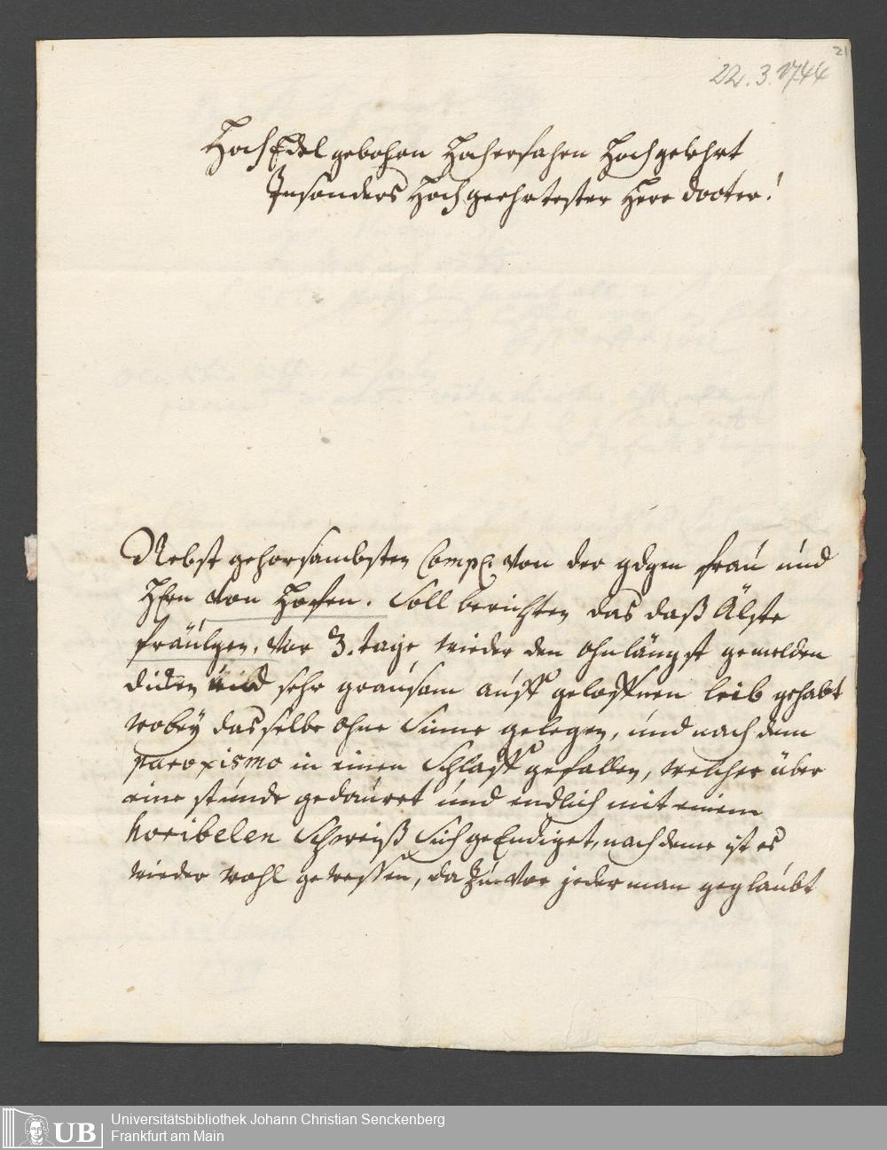 Na 31 Nachlass Johann Christian Senckenberg, 237 - Consilia medica de Hofen