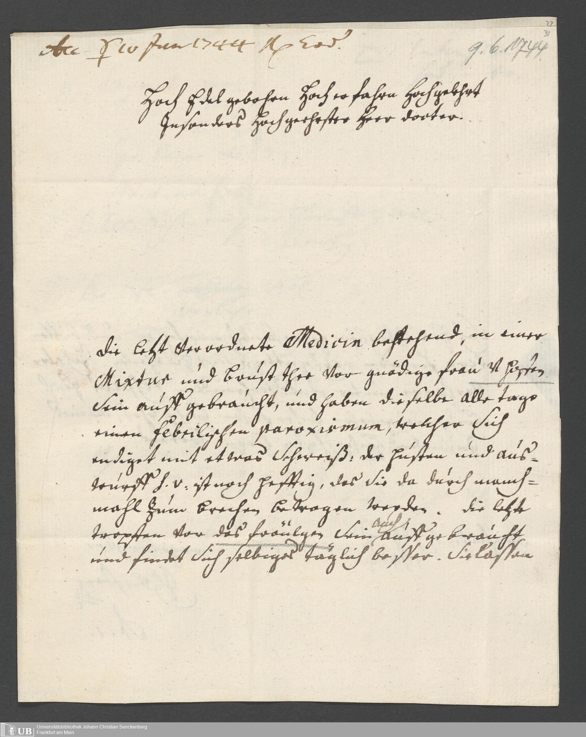 Na 31 Nachlass Johann Christian Senckenberg, 237 - Consilia medica de Hofen