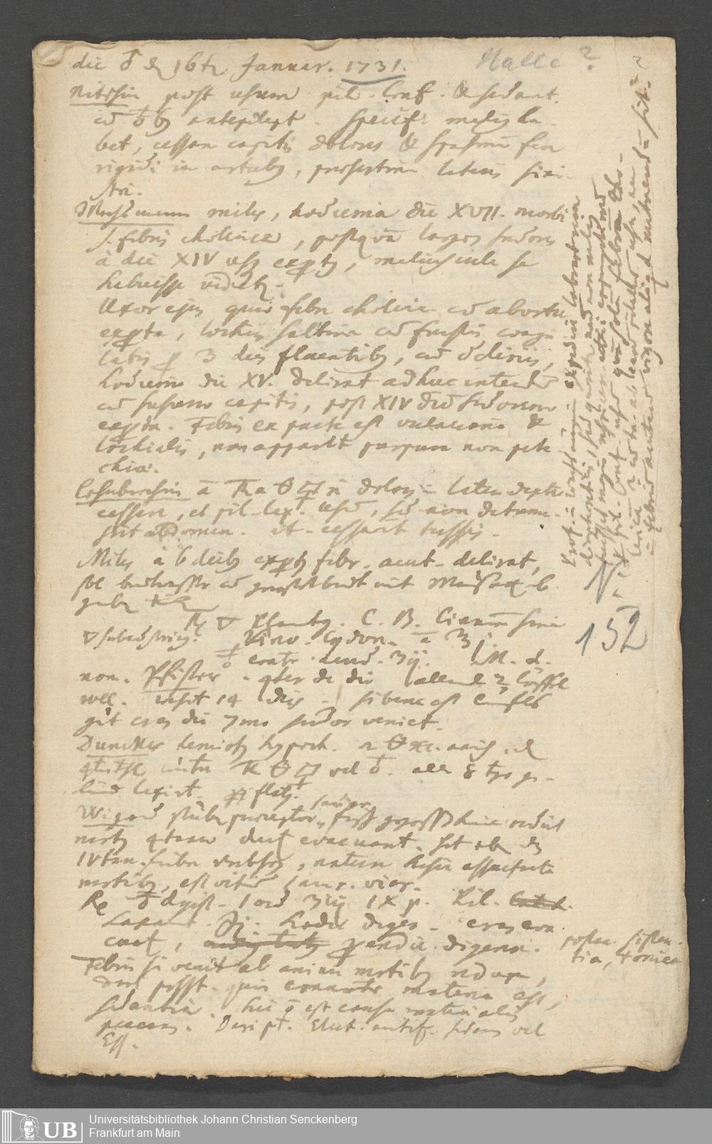 Na 31 Nachlass Johann Christian Senckenberg, 249 - medizinische Tagebuchaufzeichnungen (p. I.3.a.152)