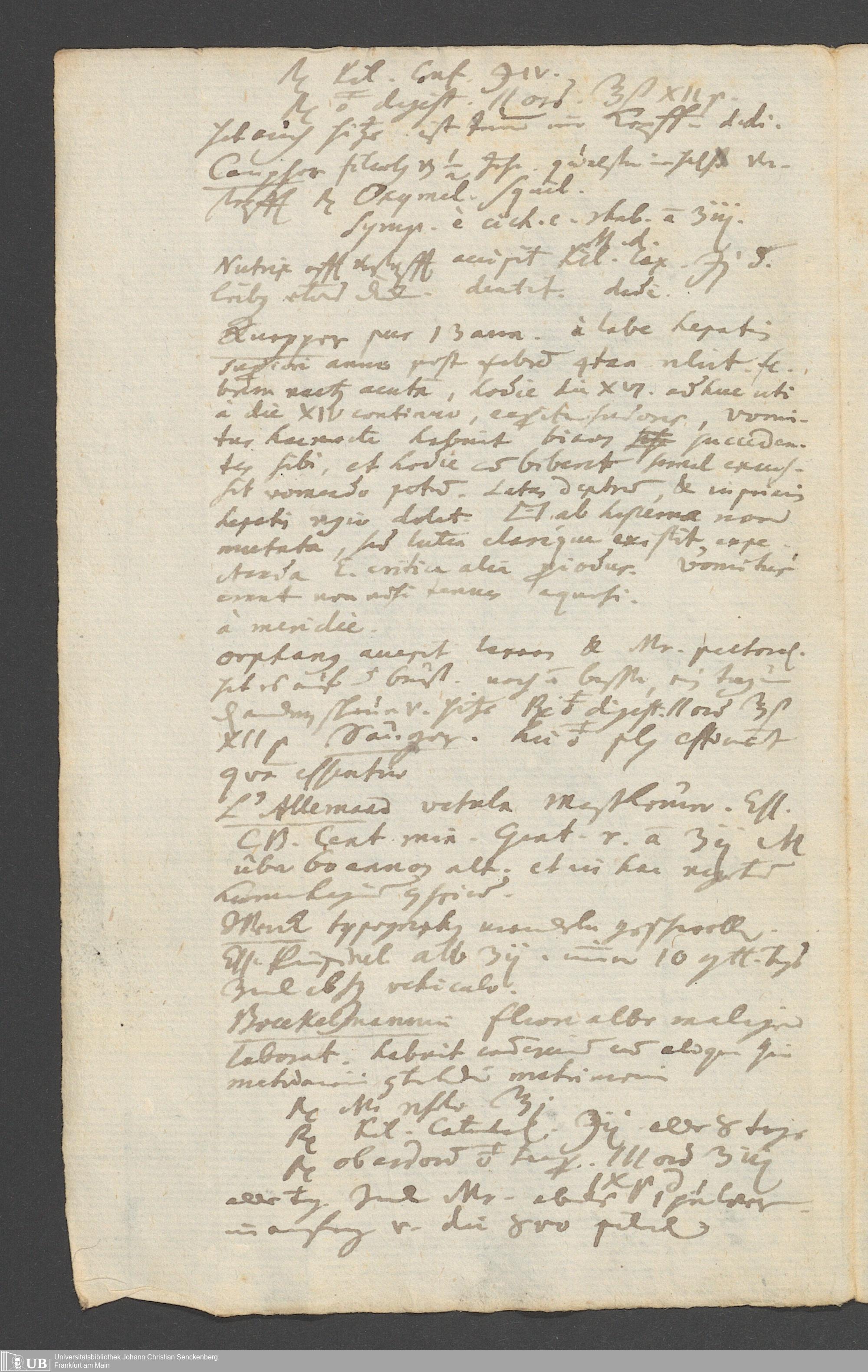 Na 31 Nachlass Johann Christian Senckenberg, 249 - medizinische Tagebuchaufzeichnungen