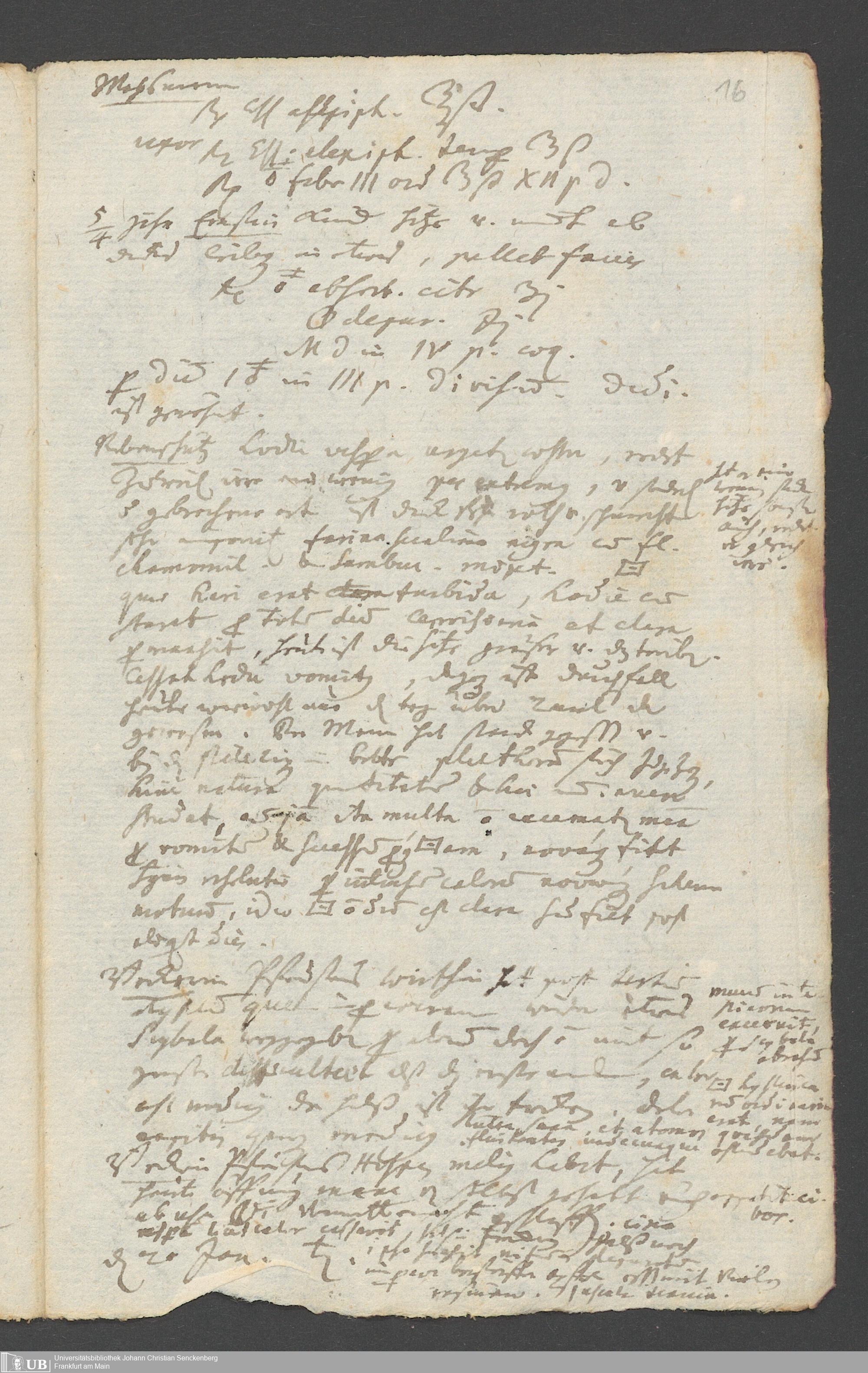Na 31 Nachlass Johann Christian Senckenberg, 249 - medizinische Tagebuchaufzeichnungen (p. I.3.a.152)