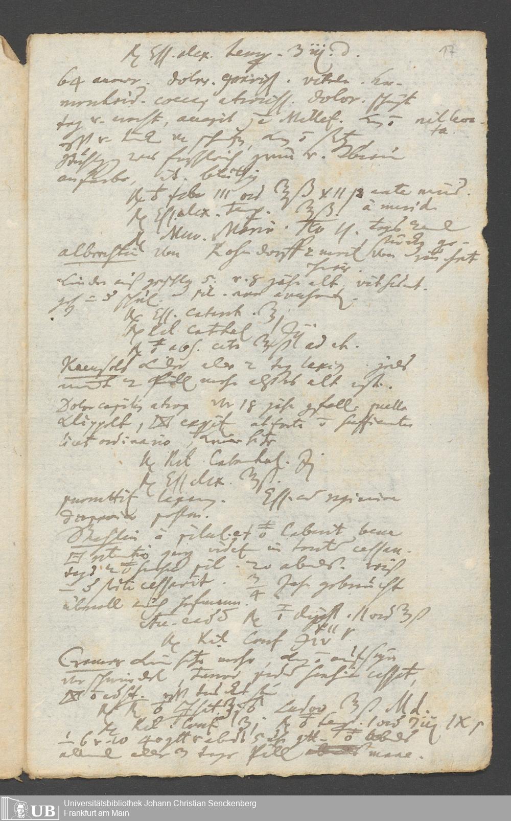 Na 31 Nachlass Johann Christian Senckenberg, 249 - medizinische Tagebuchaufzeichnungen