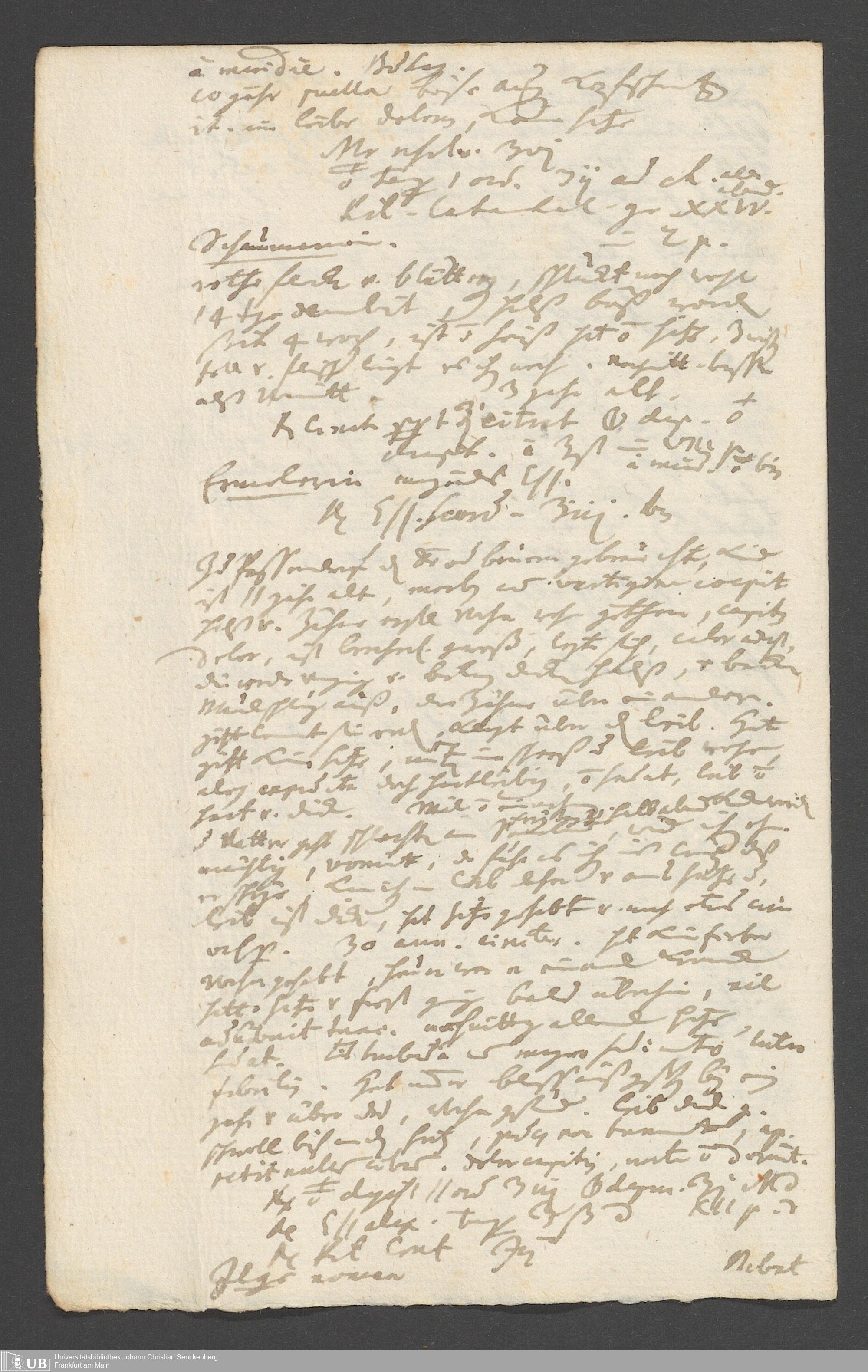 Na 31 Nachlass Johann Christian Senckenberg, 249 - medizinische Tagebuchaufzeichnungen