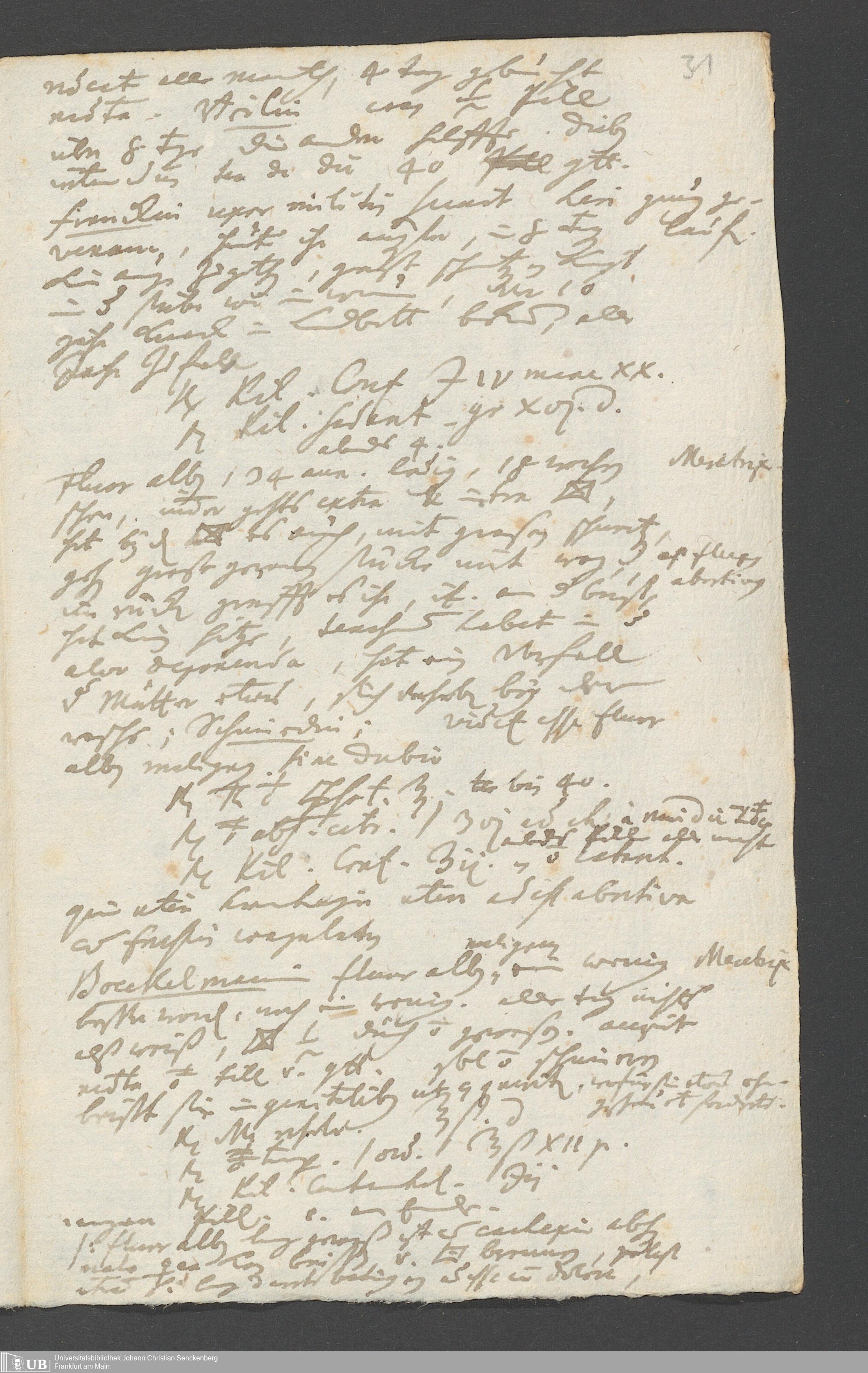 Na 31 Nachlass Johann Christian Senckenberg, 249 - medizinische Tagebuchaufzeichnungen