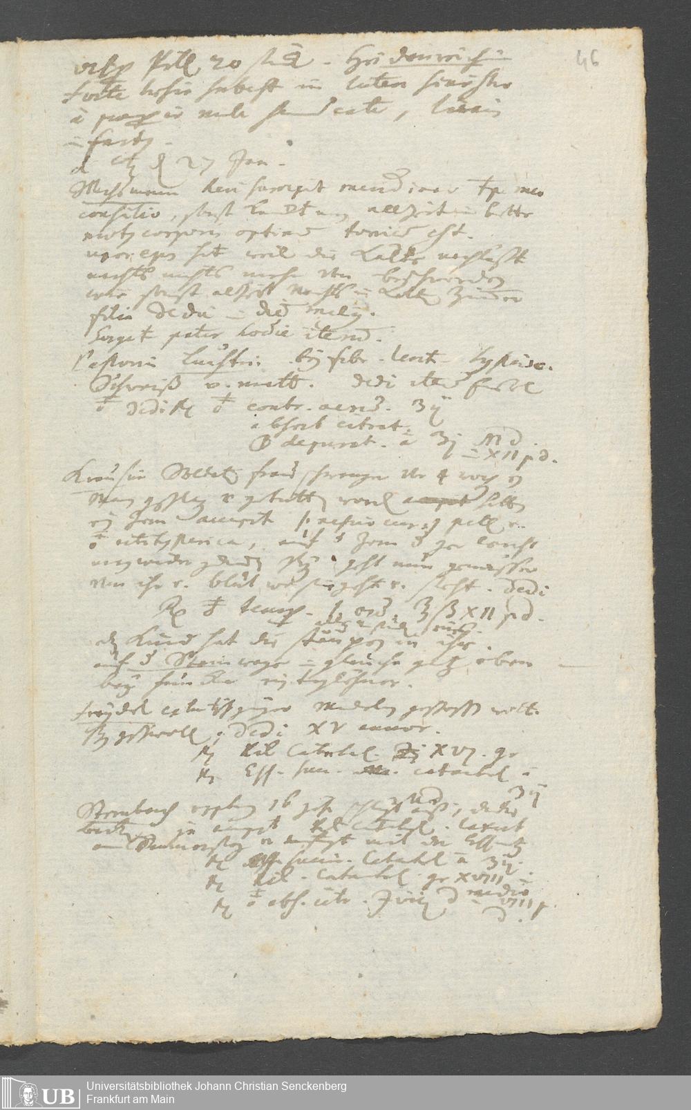 Na 31 Nachlass Johann Christian Senckenberg, 249 - medizinische Tagebuchaufzeichnungen