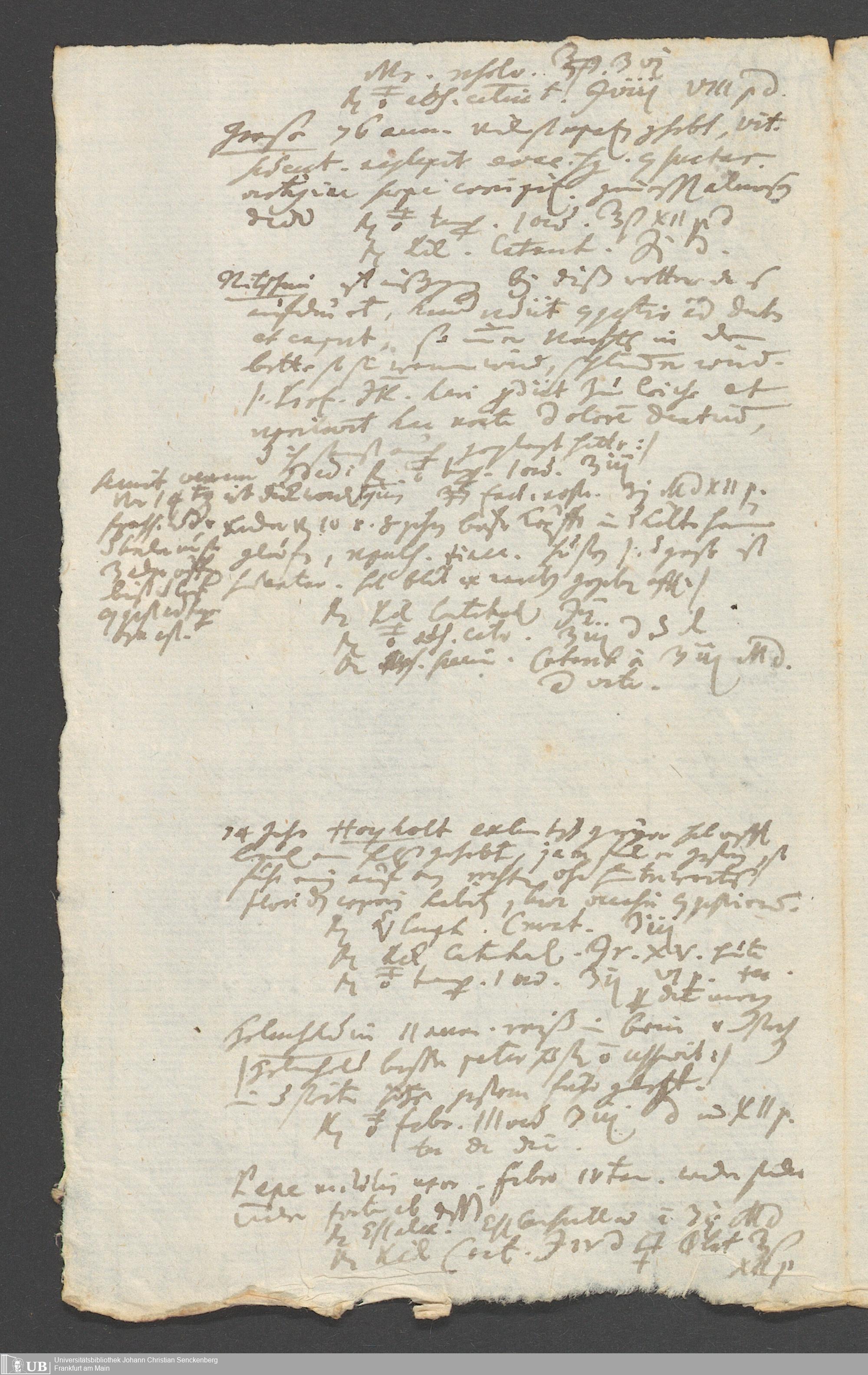 Na 31 Nachlass Johann Christian Senckenberg, 249 - medizinische Tagebuchaufzeichnungen