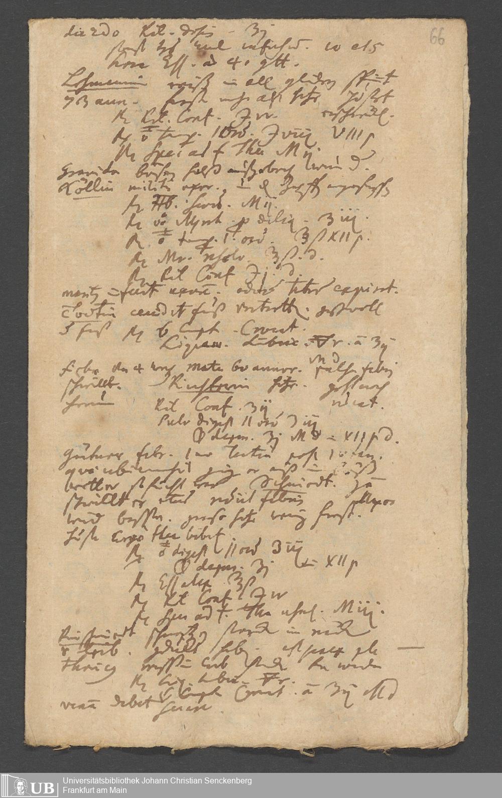 Na 31 Nachlass Johann Christian Senckenberg, 249 - medizinische Tagebuchaufzeichnungen (p. I.3.a.152)
