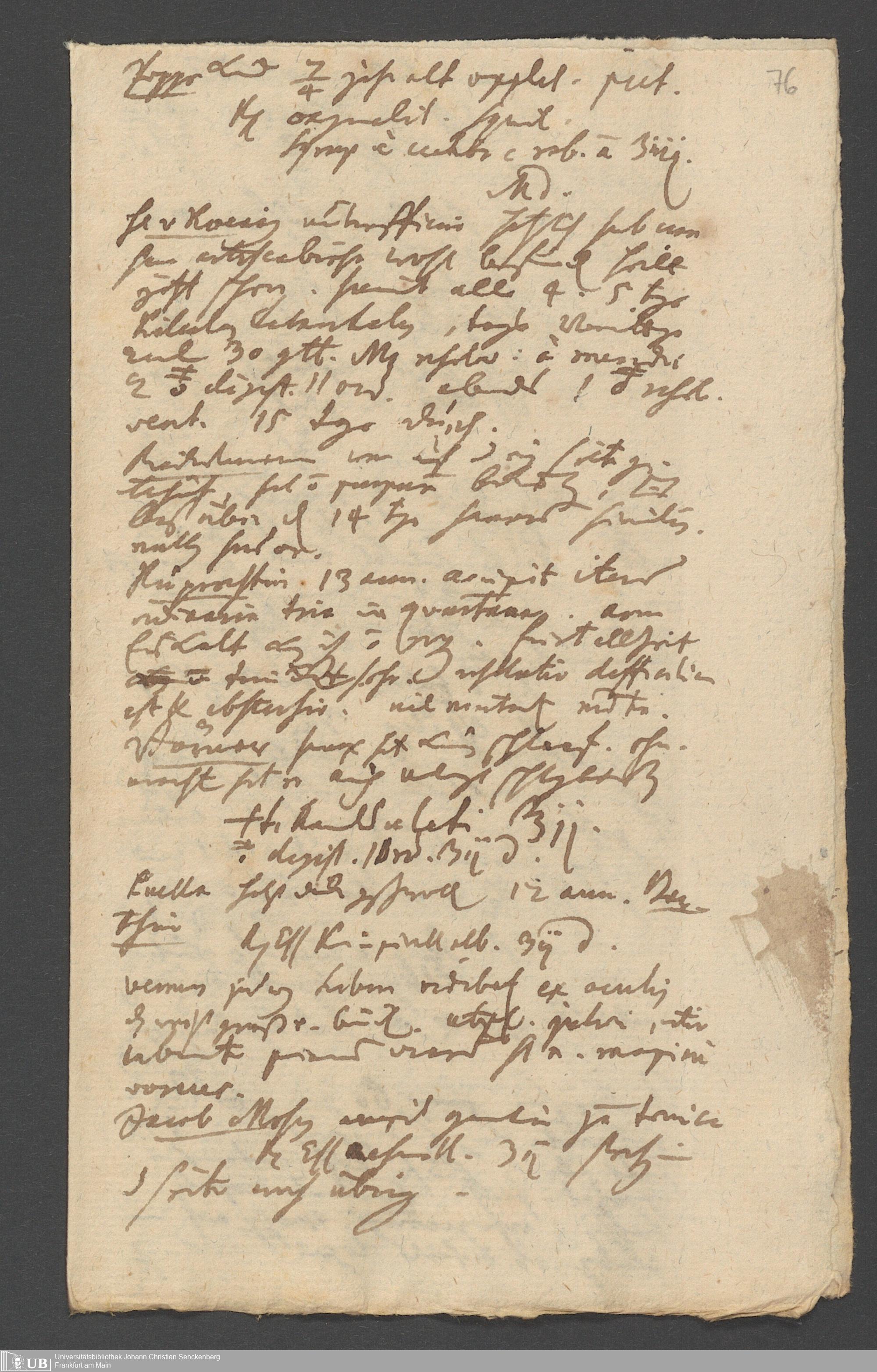 Na 31 Nachlass Johann Christian Senckenberg, 249 - medizinische Tagebuchaufzeichnungen
