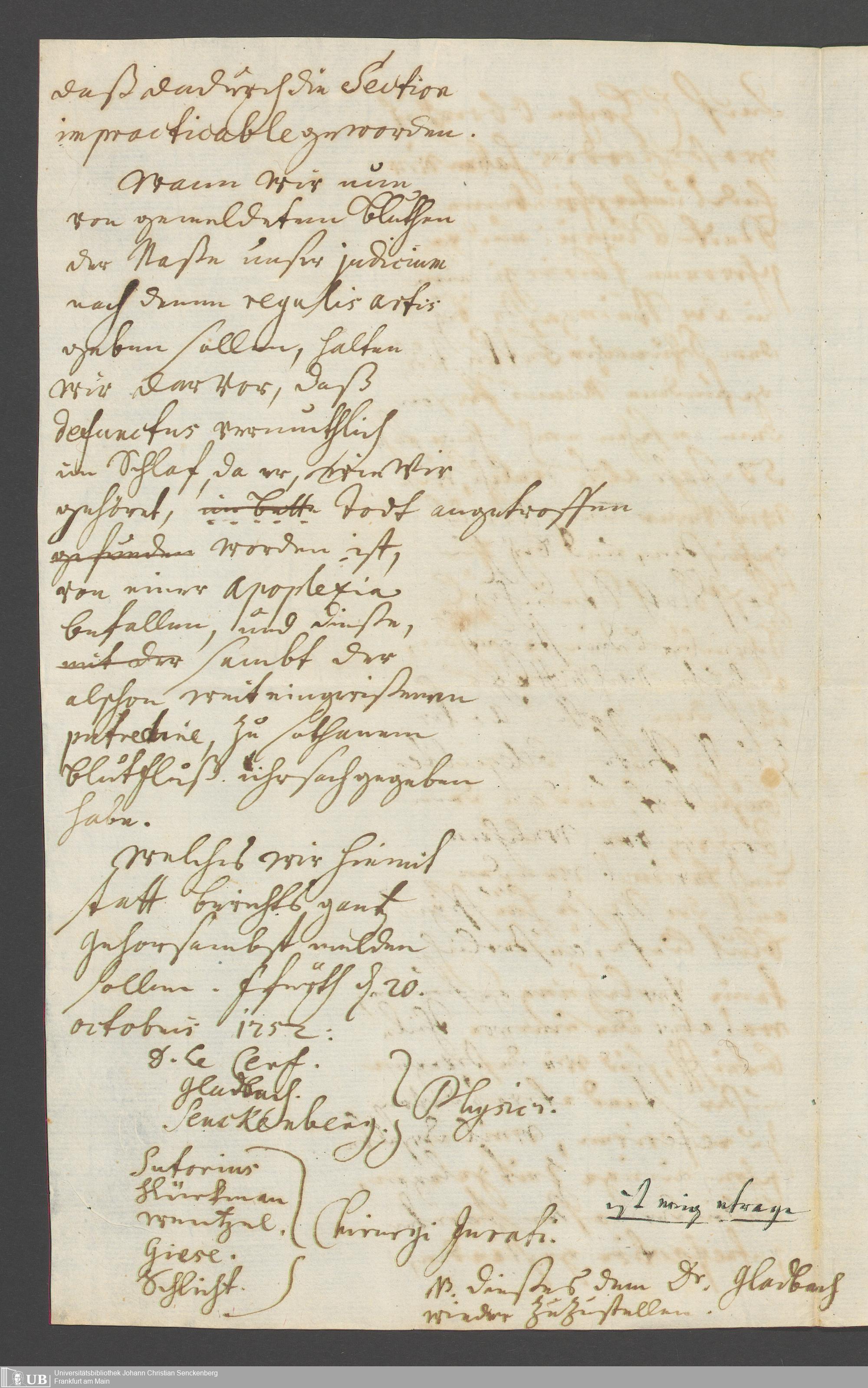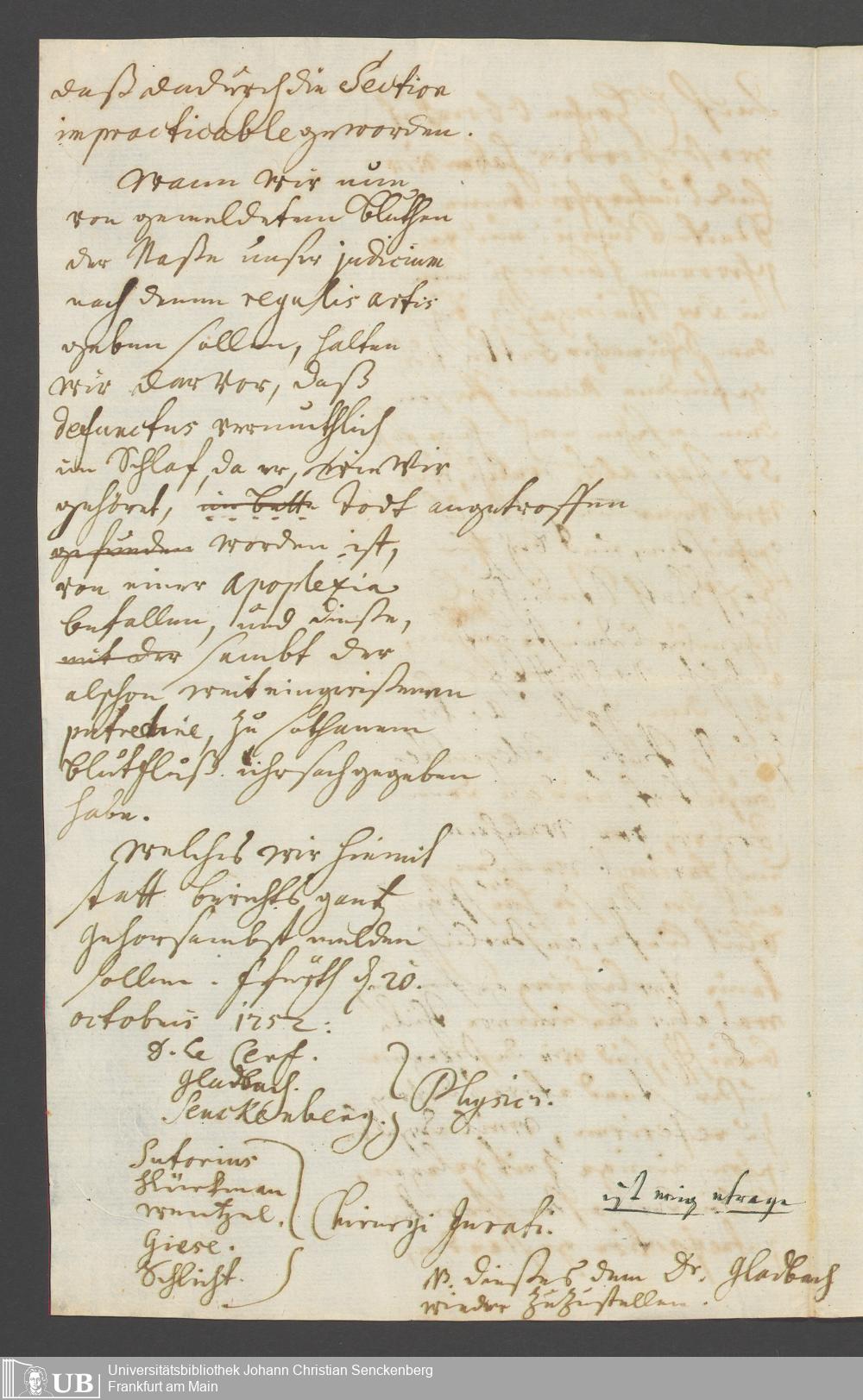 Na 31 Nachlass Johann Christian Senckenberg, 258 - Physikatsbericht 1752