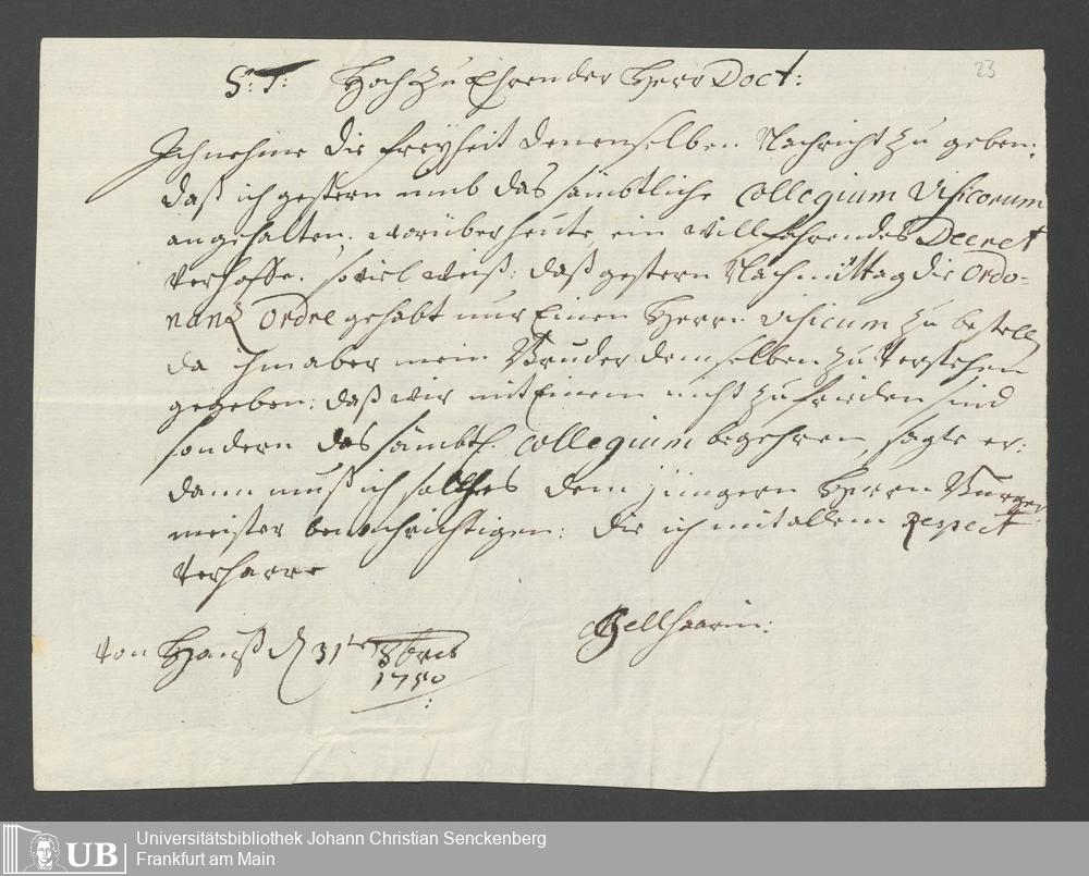 Na 31 Nachlass Johann Christian Senckenberg, 258 - Physikatsbericht 1752
