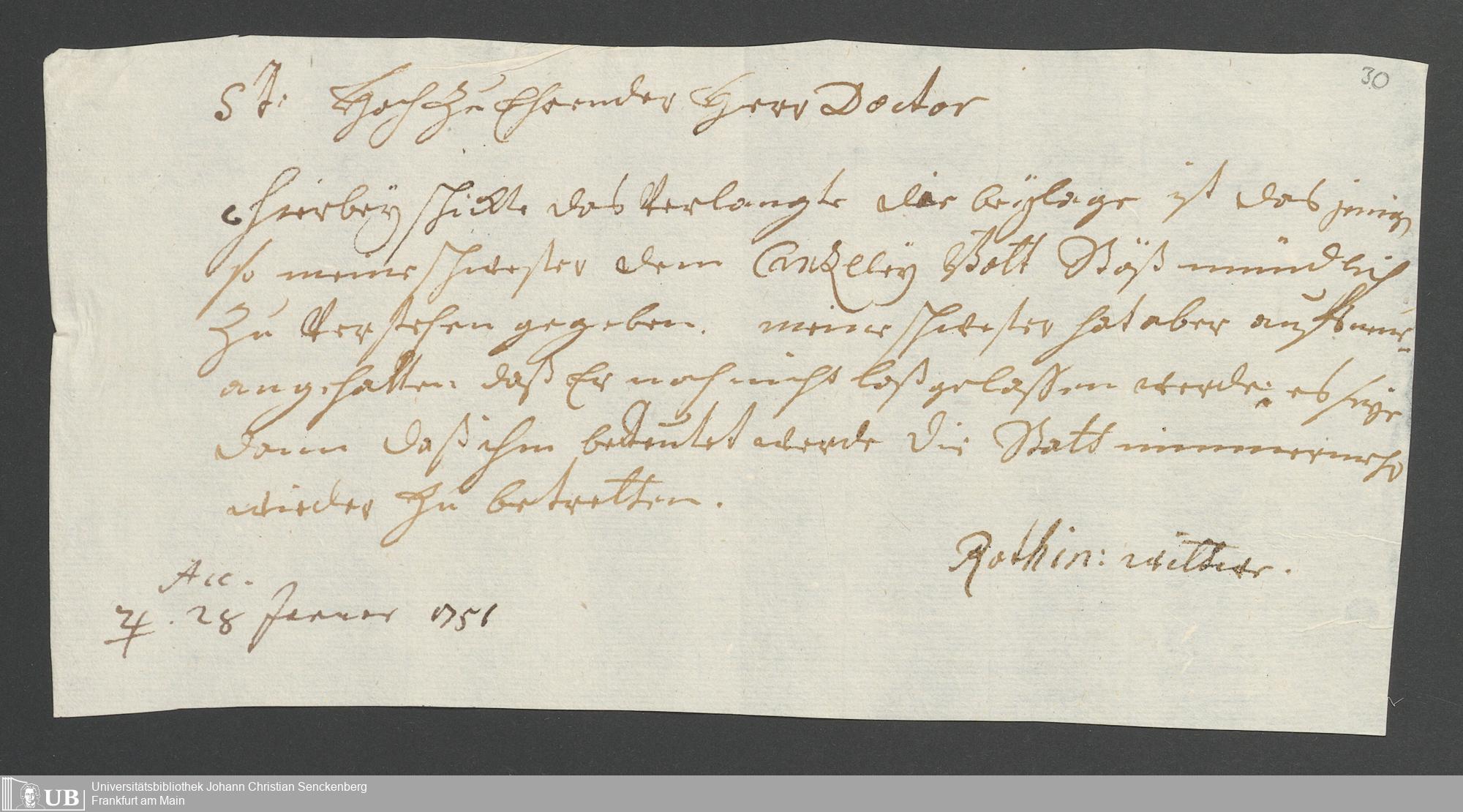 Na 31 Nachlass Johann Christian Senckenberg, 258 - Physikatsbericht 1752