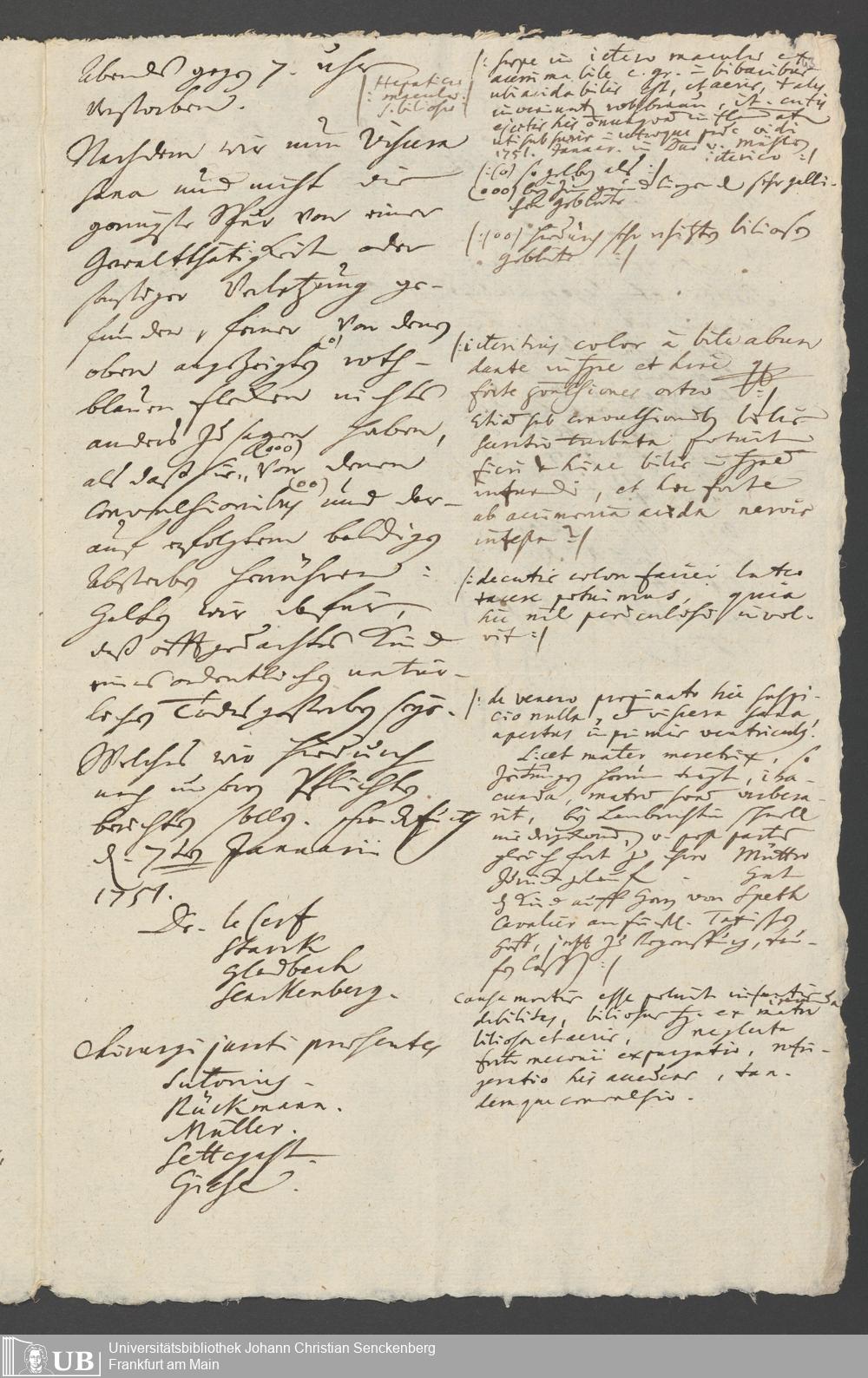 Na 31 Nachlass Johann Christian Senckenberg, 258 - Physikatsbericht 1752