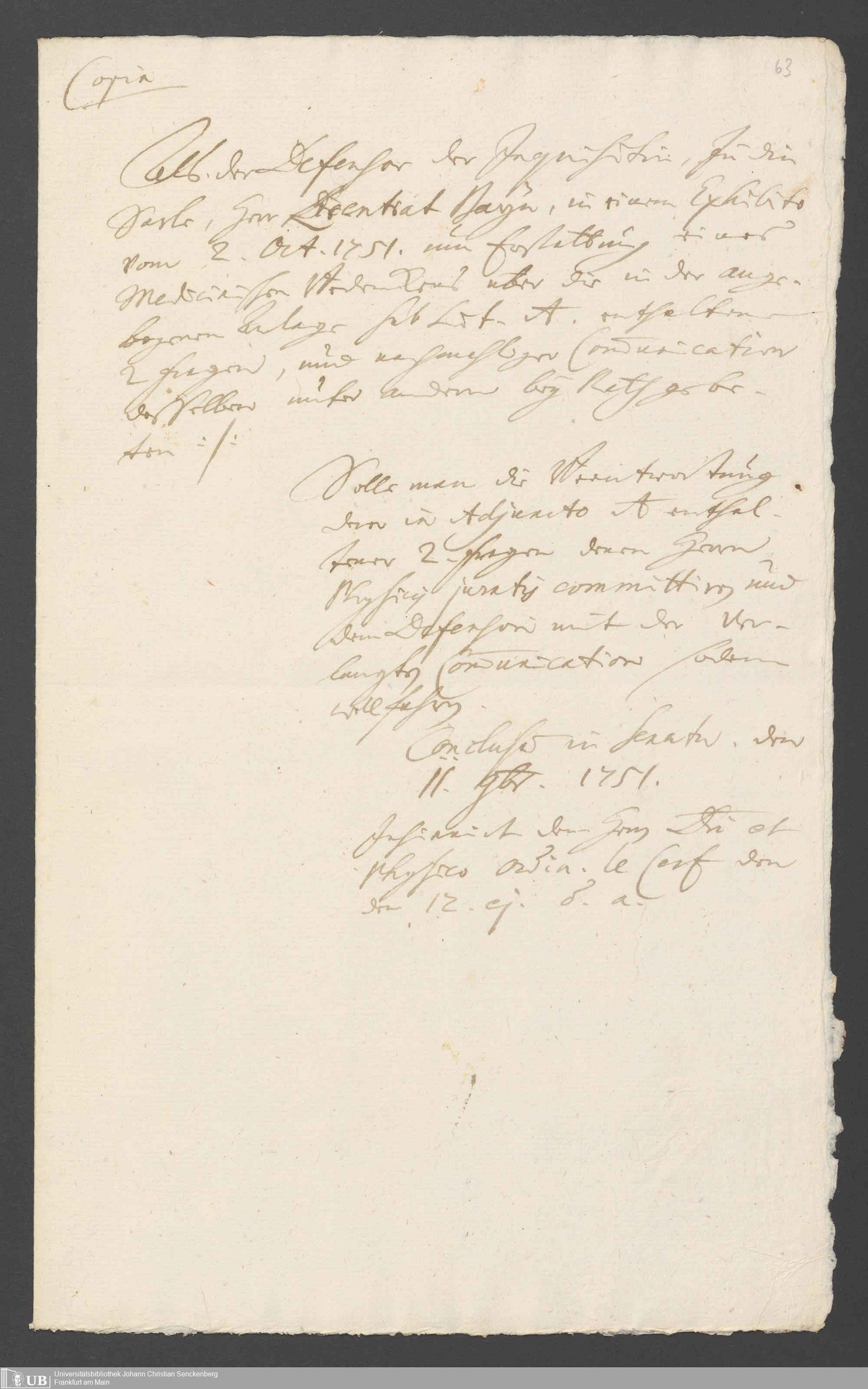 Na 31 Nachlass Johann Christian Senckenberg, 258 - Physikatsbericht 1752