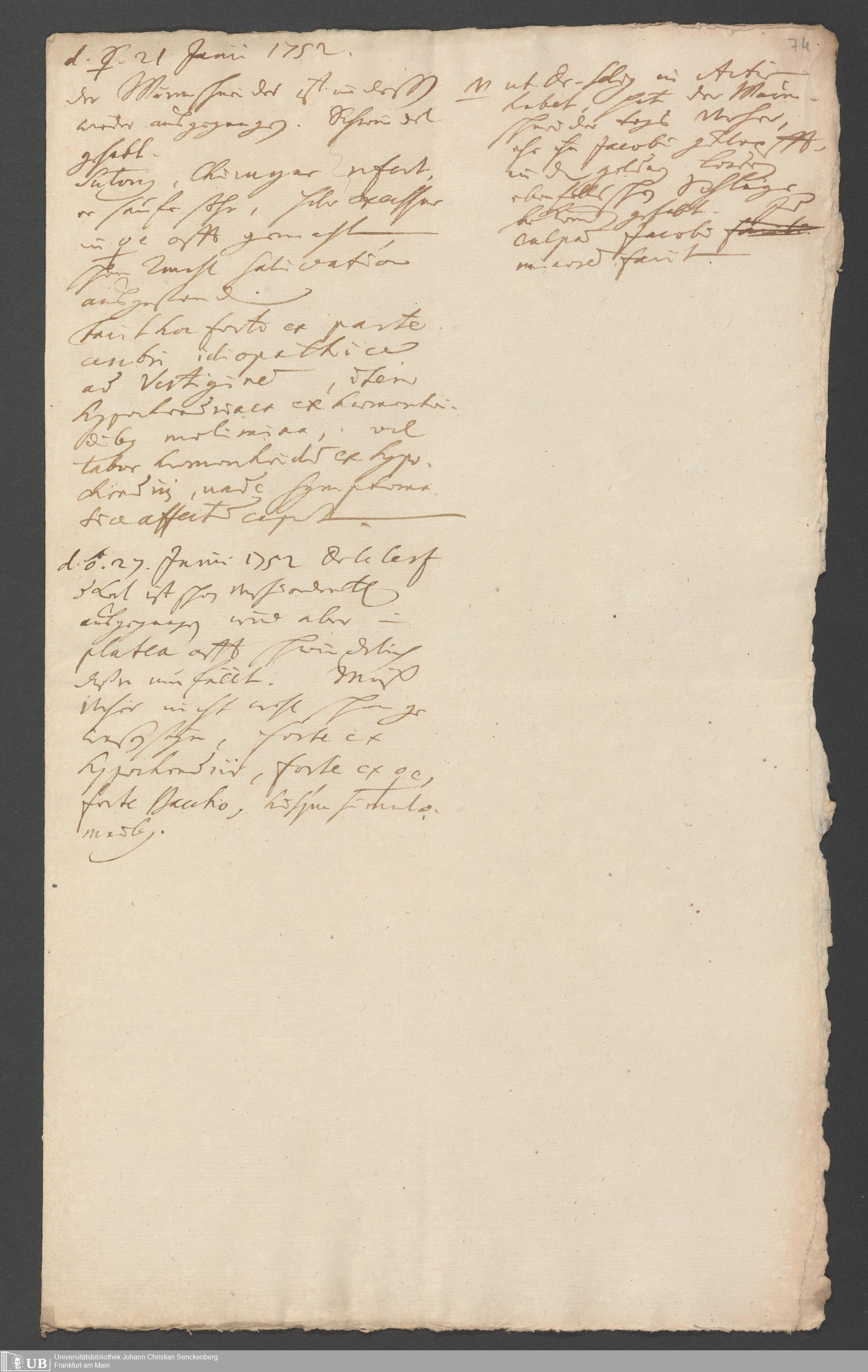 Na 31 Nachlass Johann Christian Senckenberg, 258 - Physikatsbericht 1752