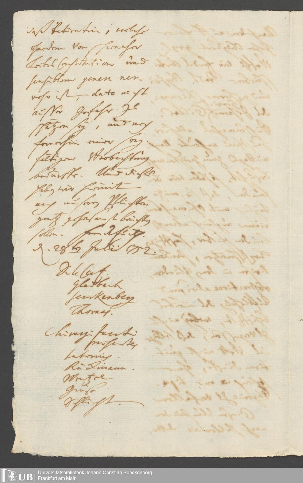 Na 31 Nachlass Johann Christian Senckenberg, 258 - Physikatsbericht 1752