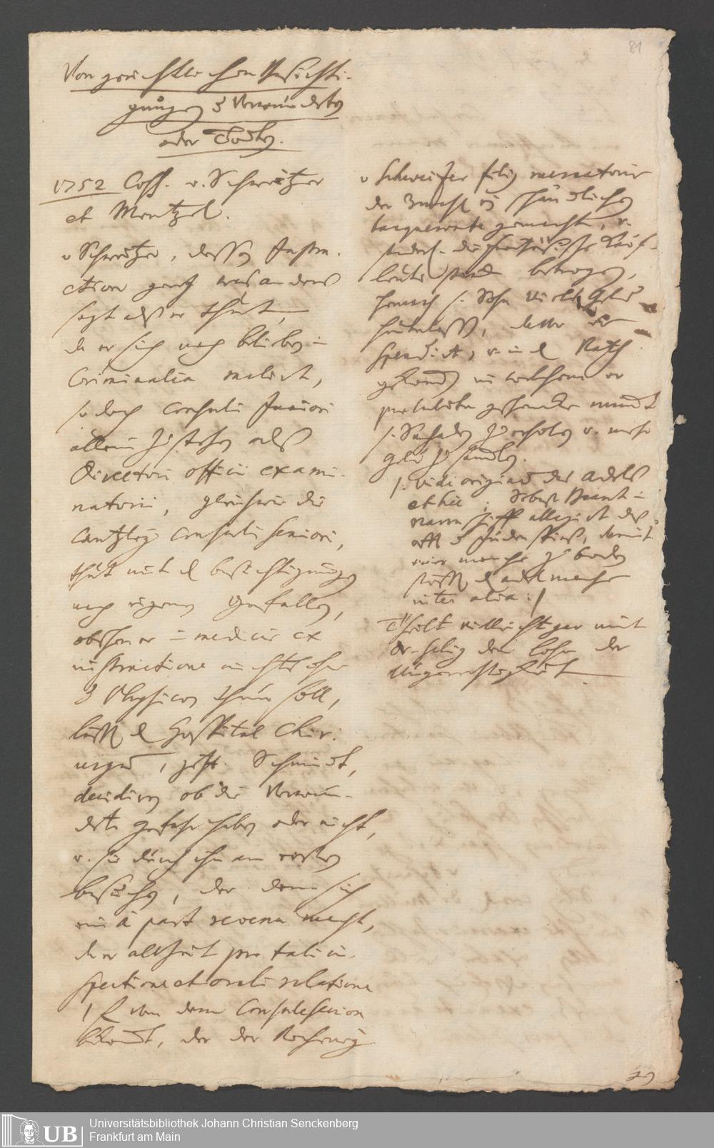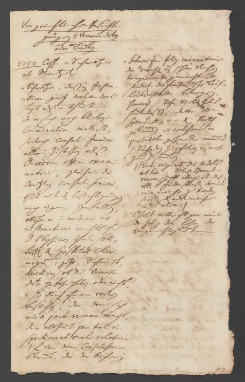 Na 31 Nachlass Johann Christian Senckenberg, 258 - Physikatsbericht 1752