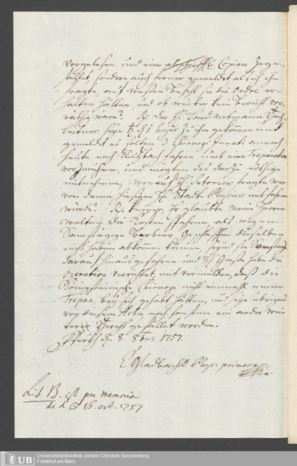 Na 31 Nachlass Johann Christian Senckenberg, 260 - Physikatsberichte 1754-1757