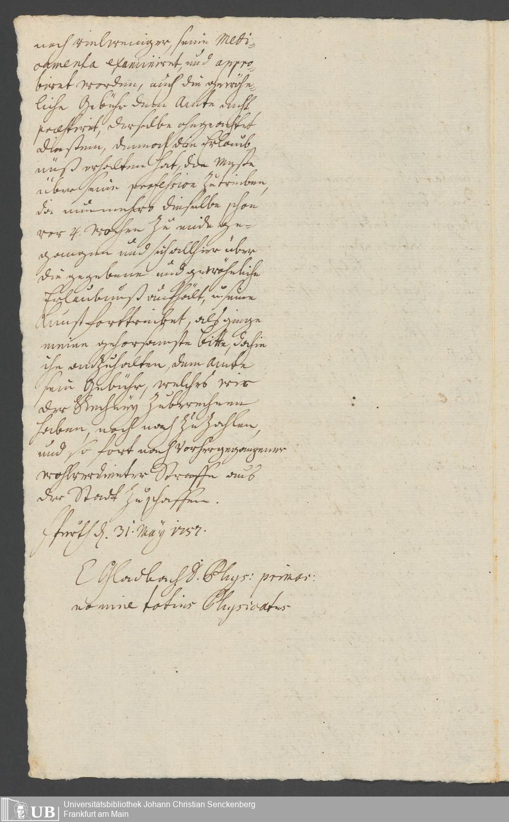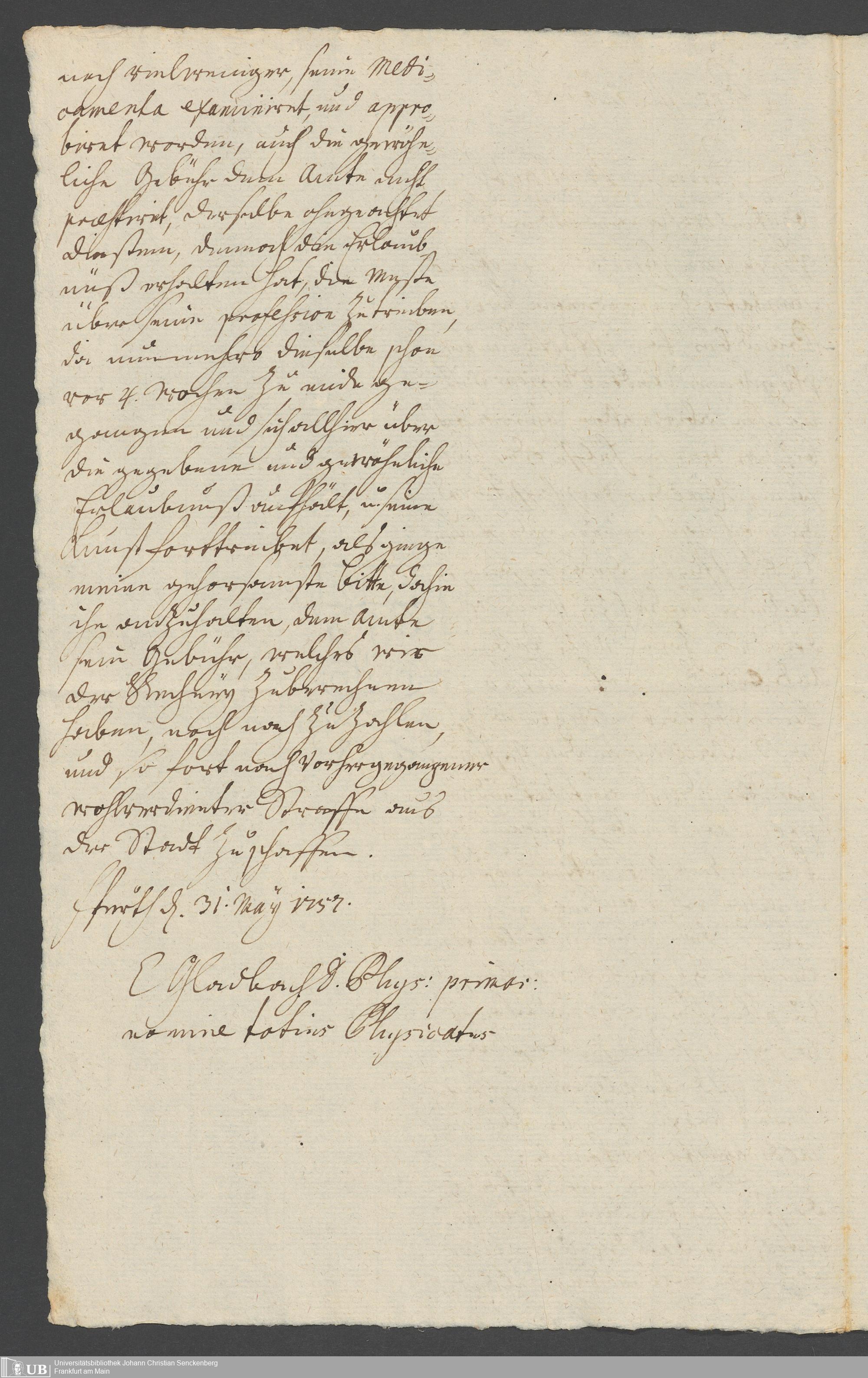 Na 31 Nachlass Johann Christian Senckenberg, 260 - Physikatsberichte 1754-1757