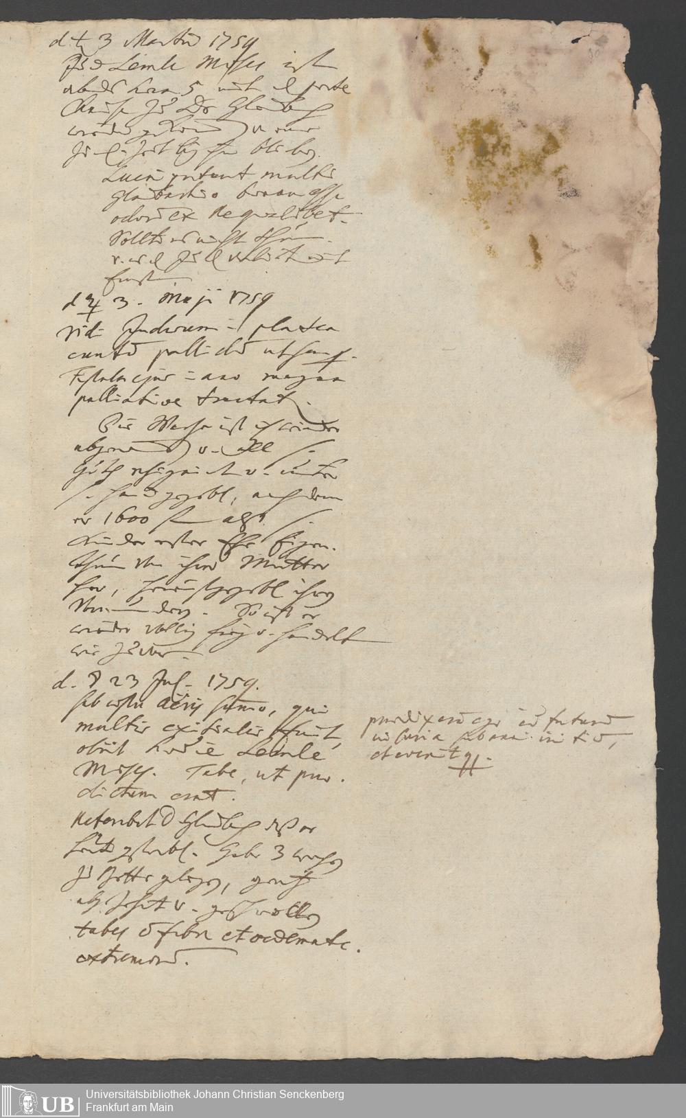 Na 31 Nachlass Johann Christian Senckenberg, 261 - Physikatsberichte 1758