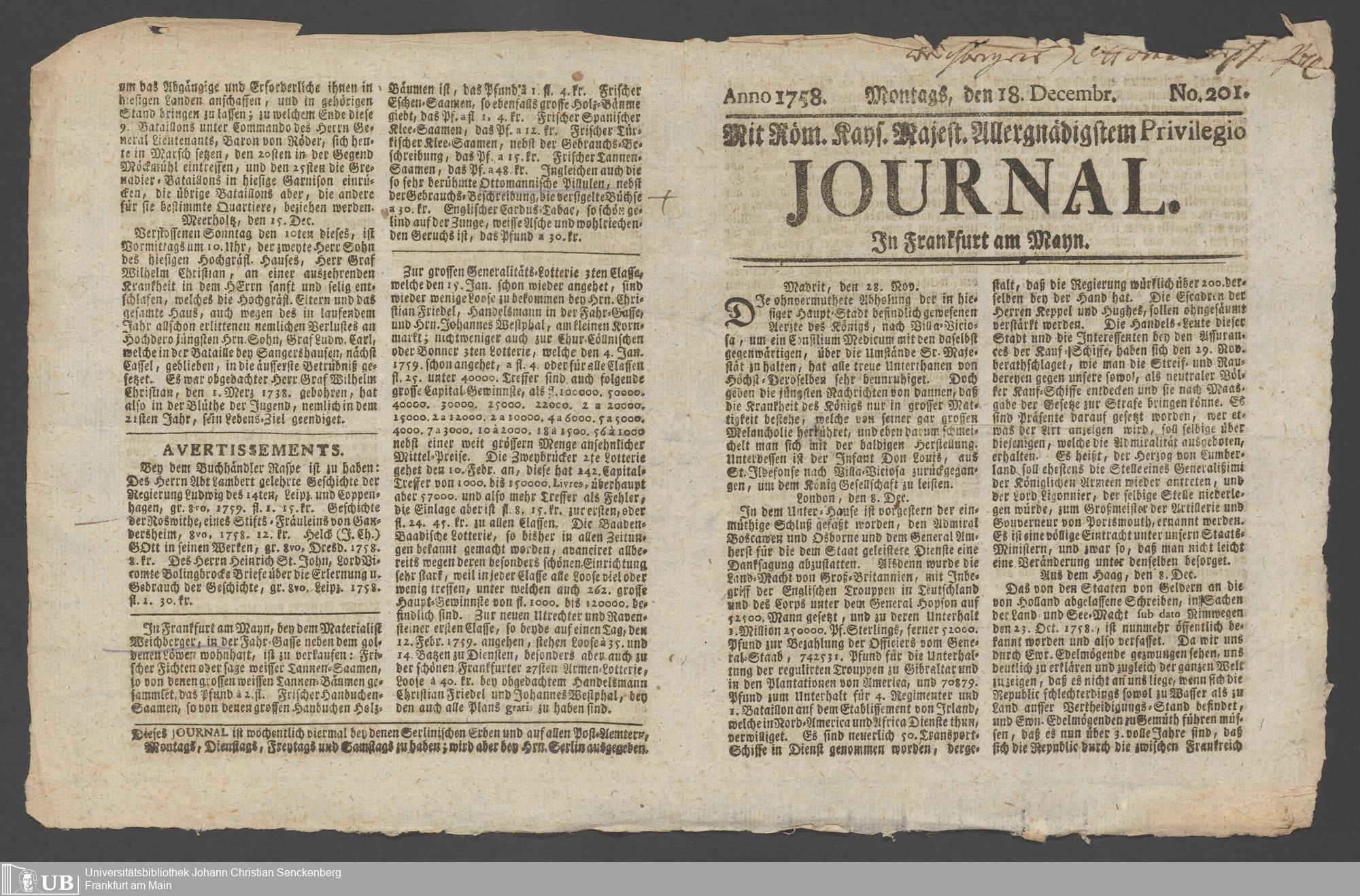 Nachlass Johann Christian Senckenberg