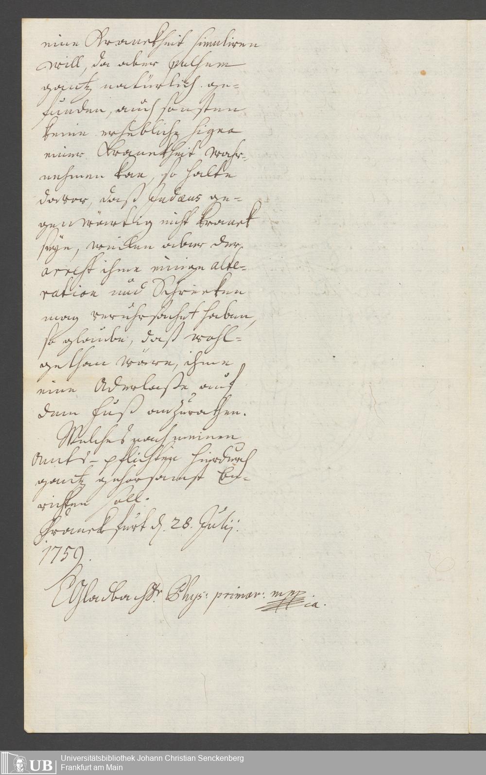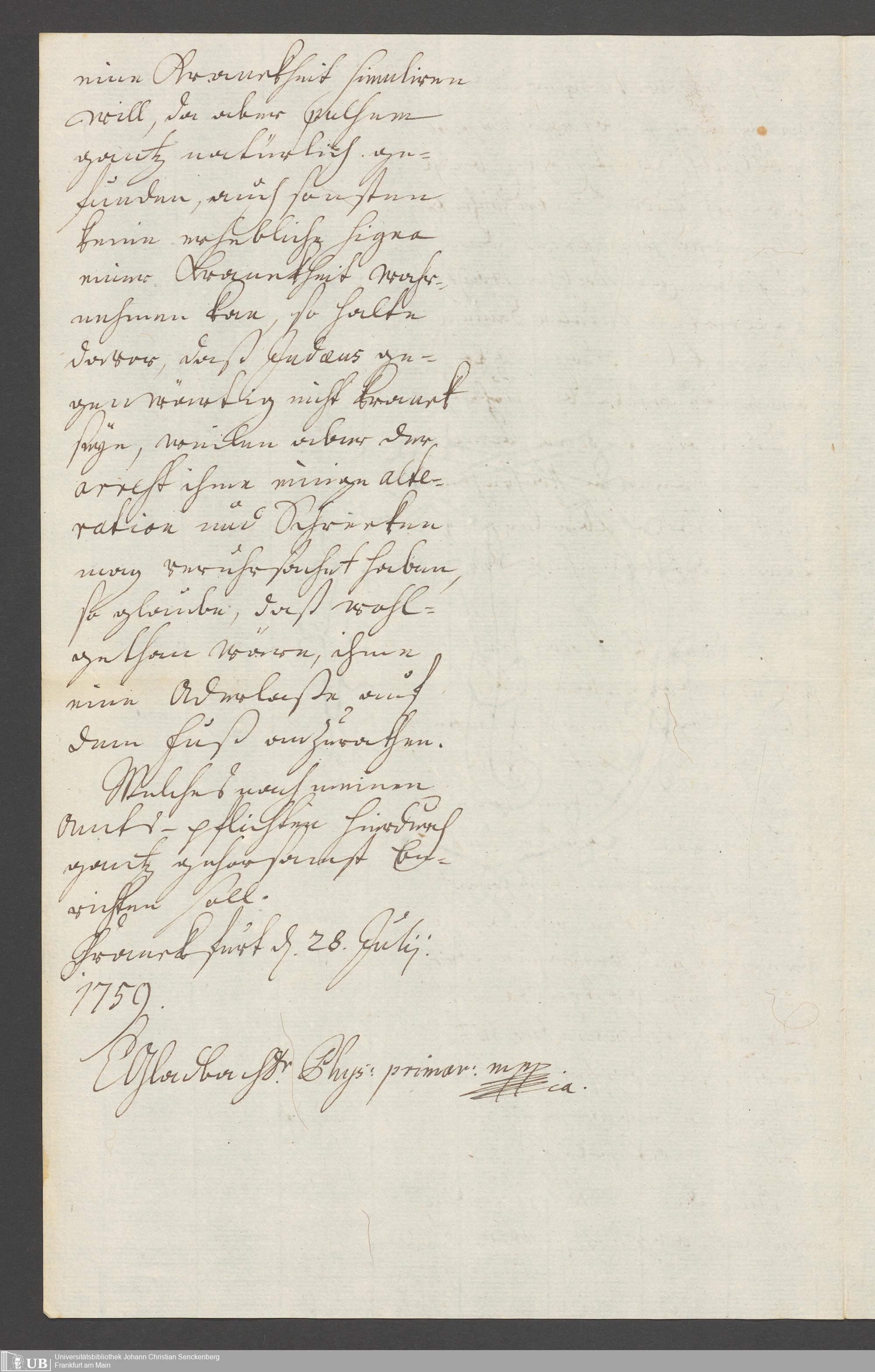 Na 31 Nachlass Johann Christian Senckenberg, 262 - Physikatsbericht 1759-1761