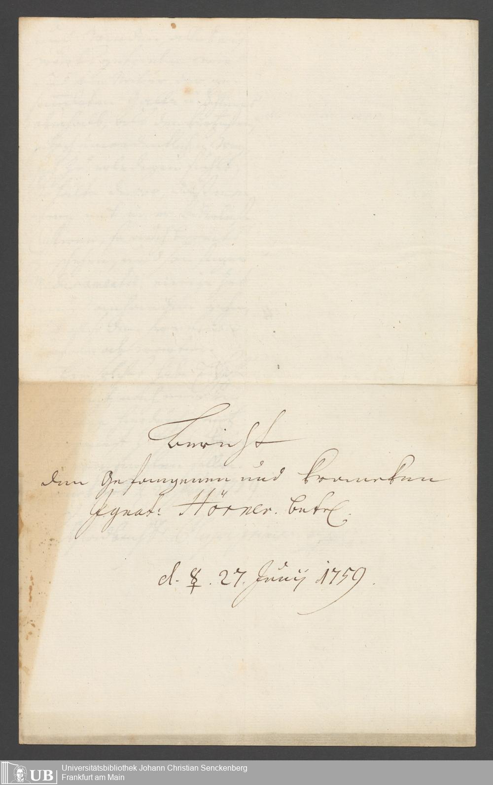 Na 31 Nachlass Johann Christian Senckenberg, 262 - Physikatsbericht 1759-1761