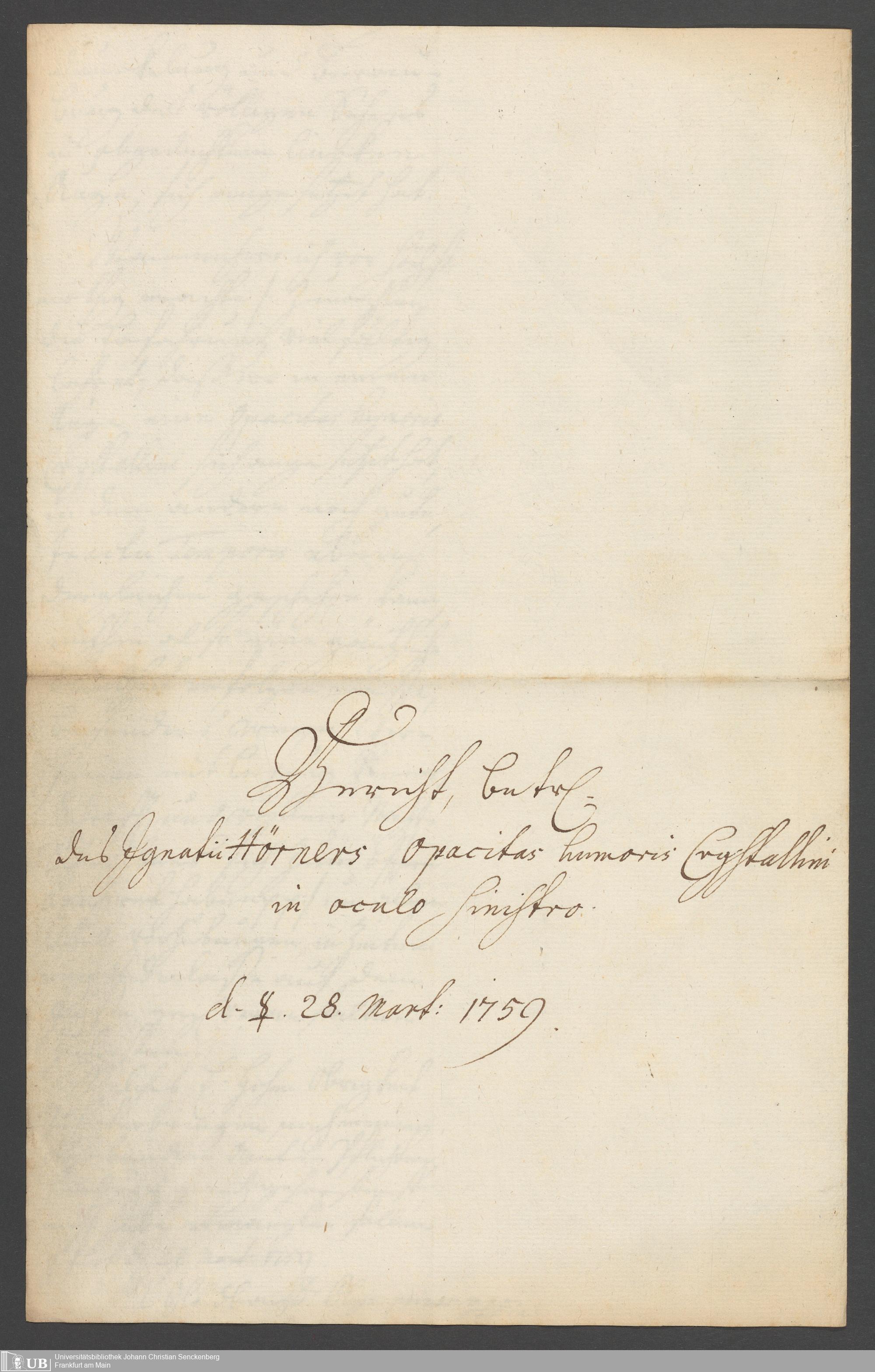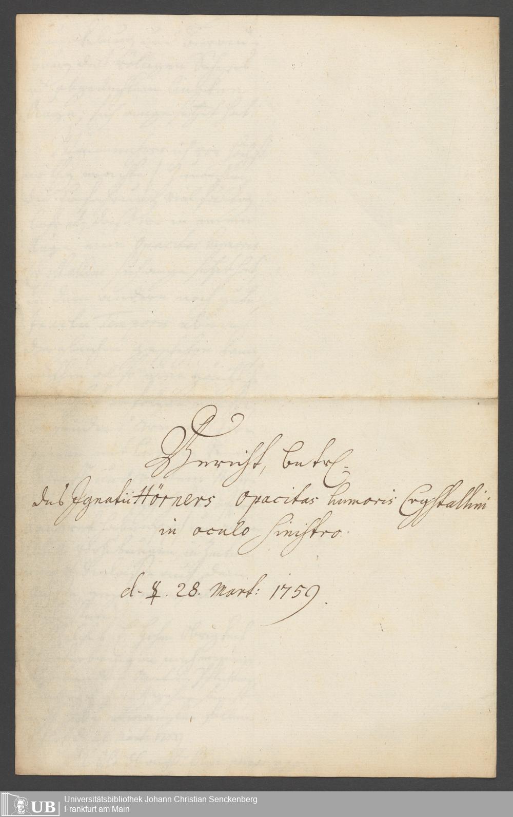 Na 31 Nachlass Johann Christian Senckenberg, 262 - Physikatsbericht 1759-1761