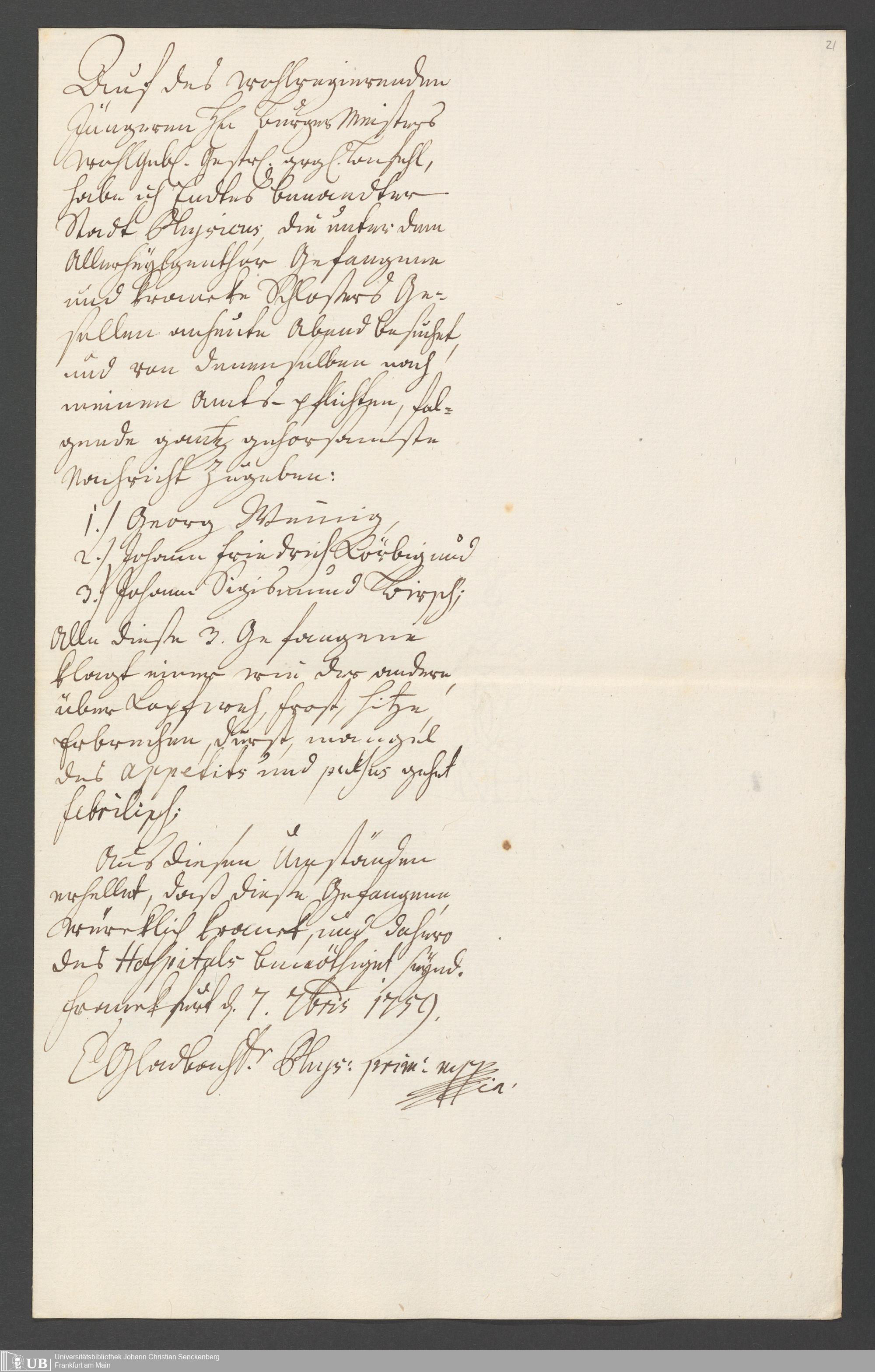 Na 31 Nachlass Johann Christian Senckenberg, 262 - Physikatsbericht 1759-1761