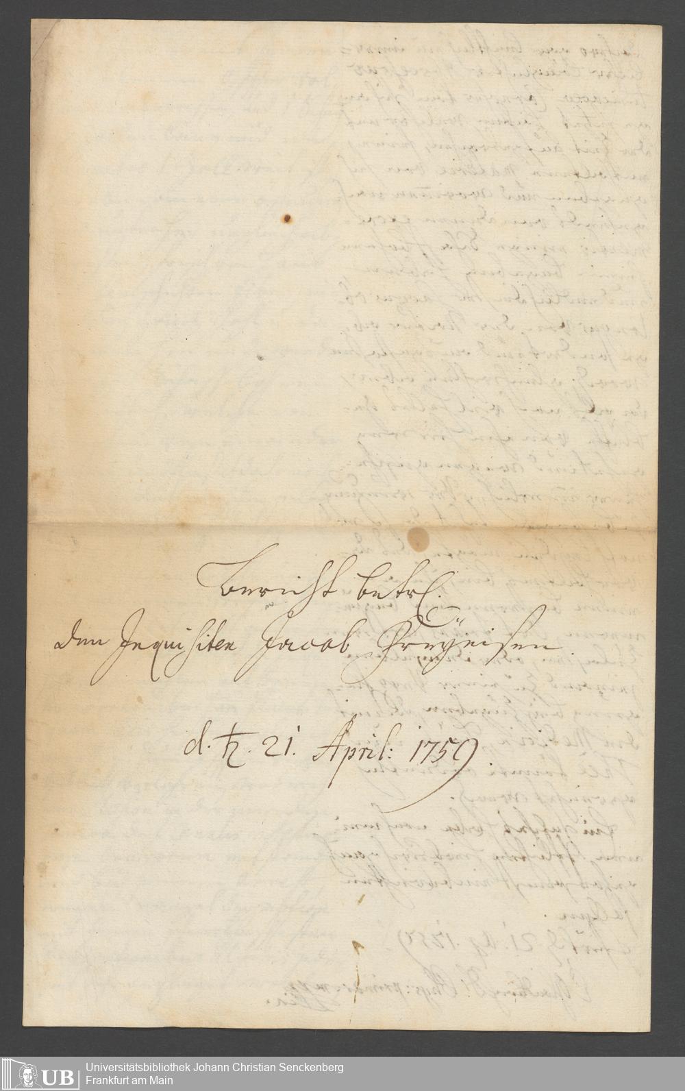 Na 31 Nachlass Johann Christian Senckenberg, 262 - Physikatsbericht 1759-1761