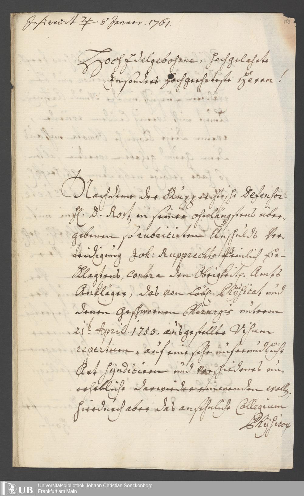 Na 31 Nachlass Johann Christian Senckenberg, 262 - Physikatsbericht 1759-1761