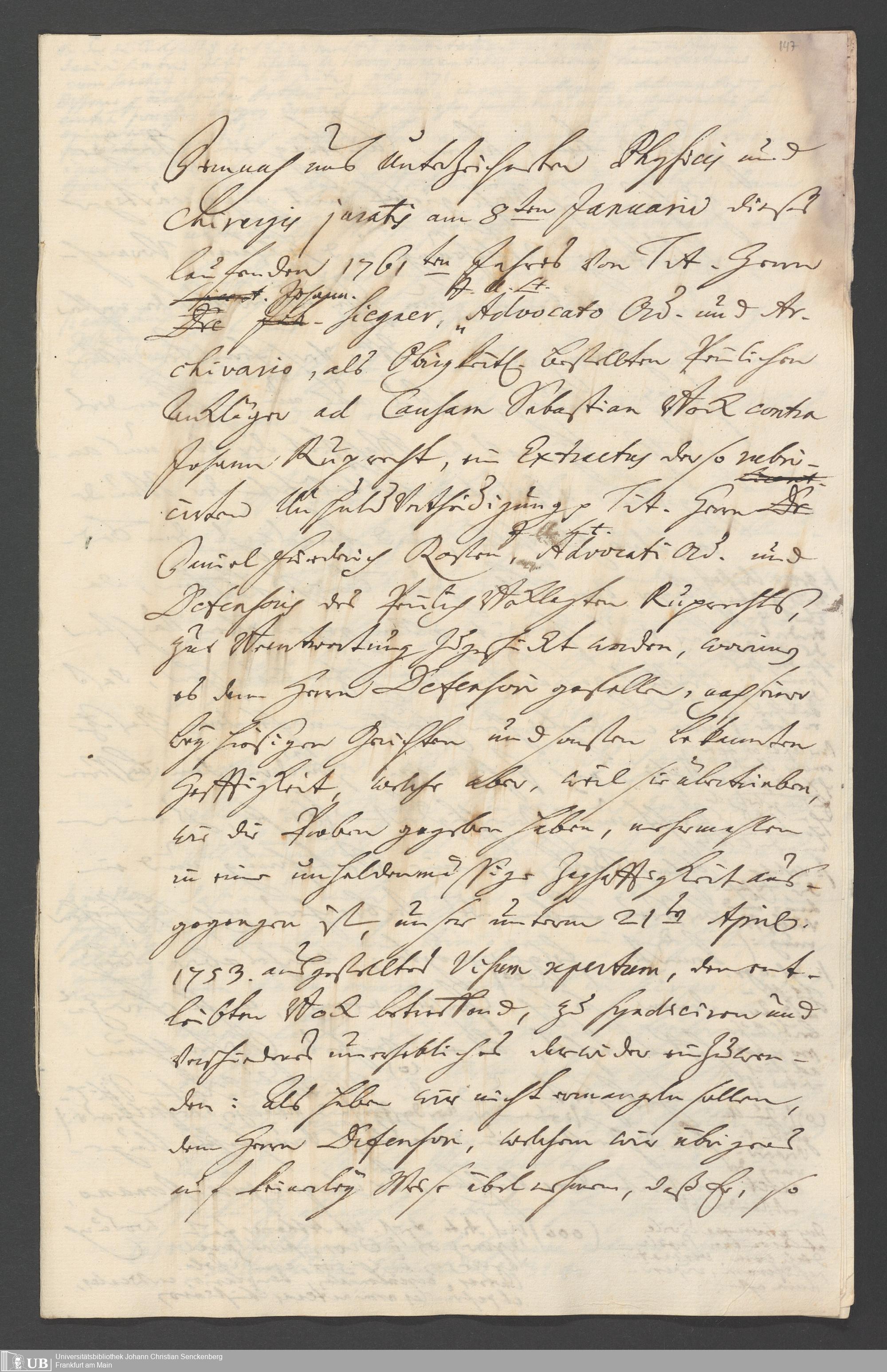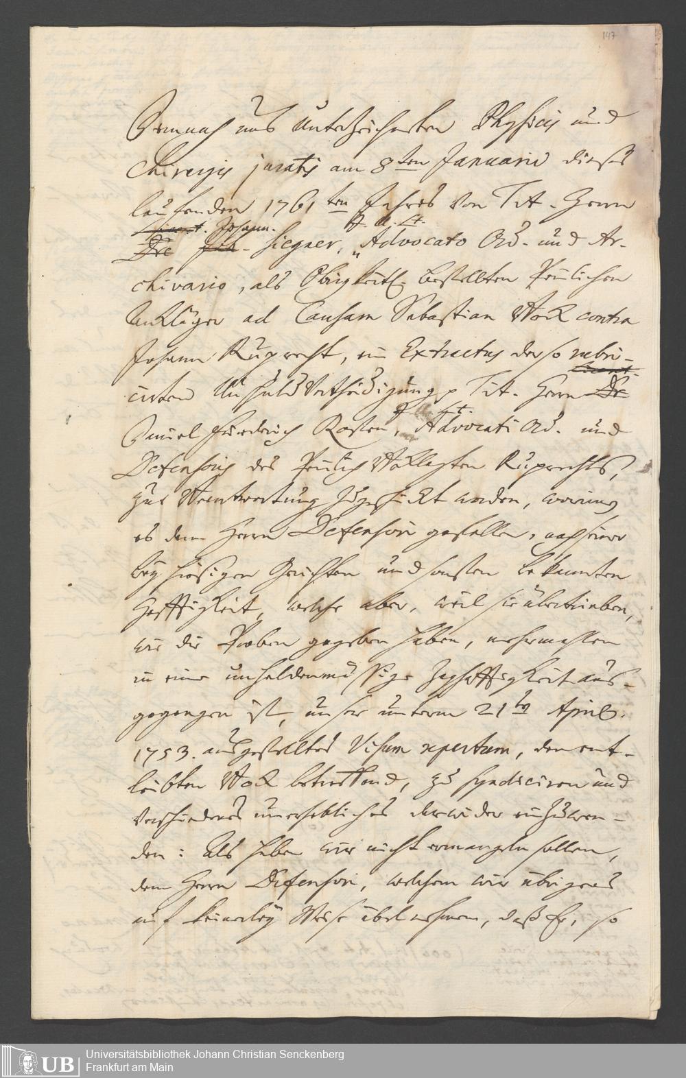 Na 31 Nachlass Johann Christian Senckenberg, 262 - Physikatsbericht 1759-1761