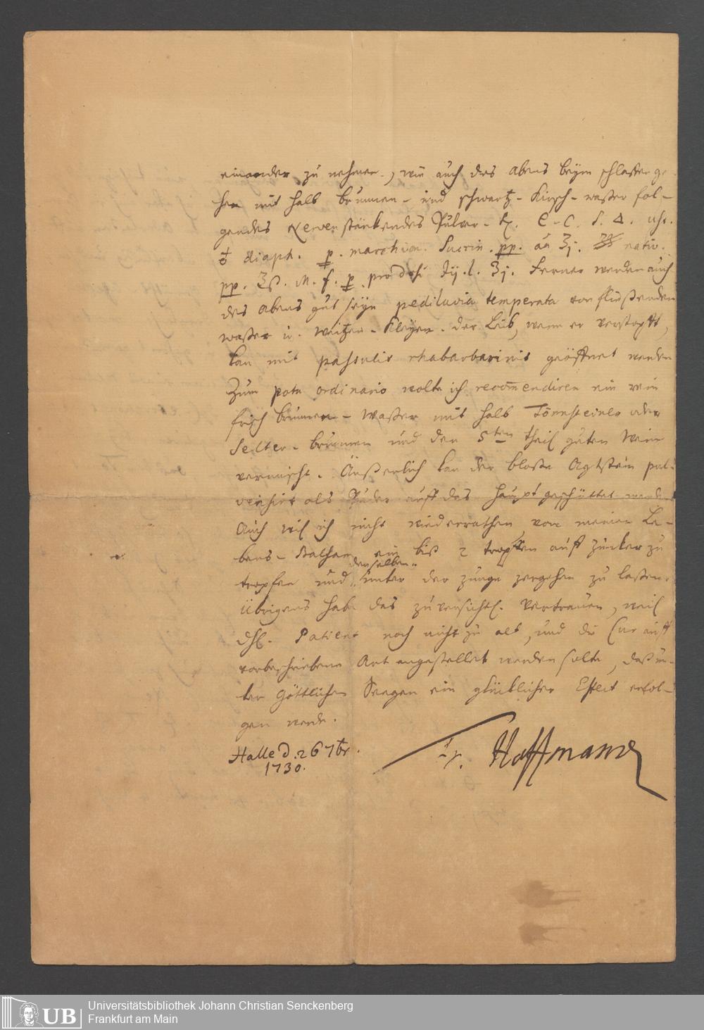 Na 31 Nachlass Johann Christian Senckenberg, 293 - Briefe von Hoffmann (Halle) und Boerhaave (p. I.3.c.193)