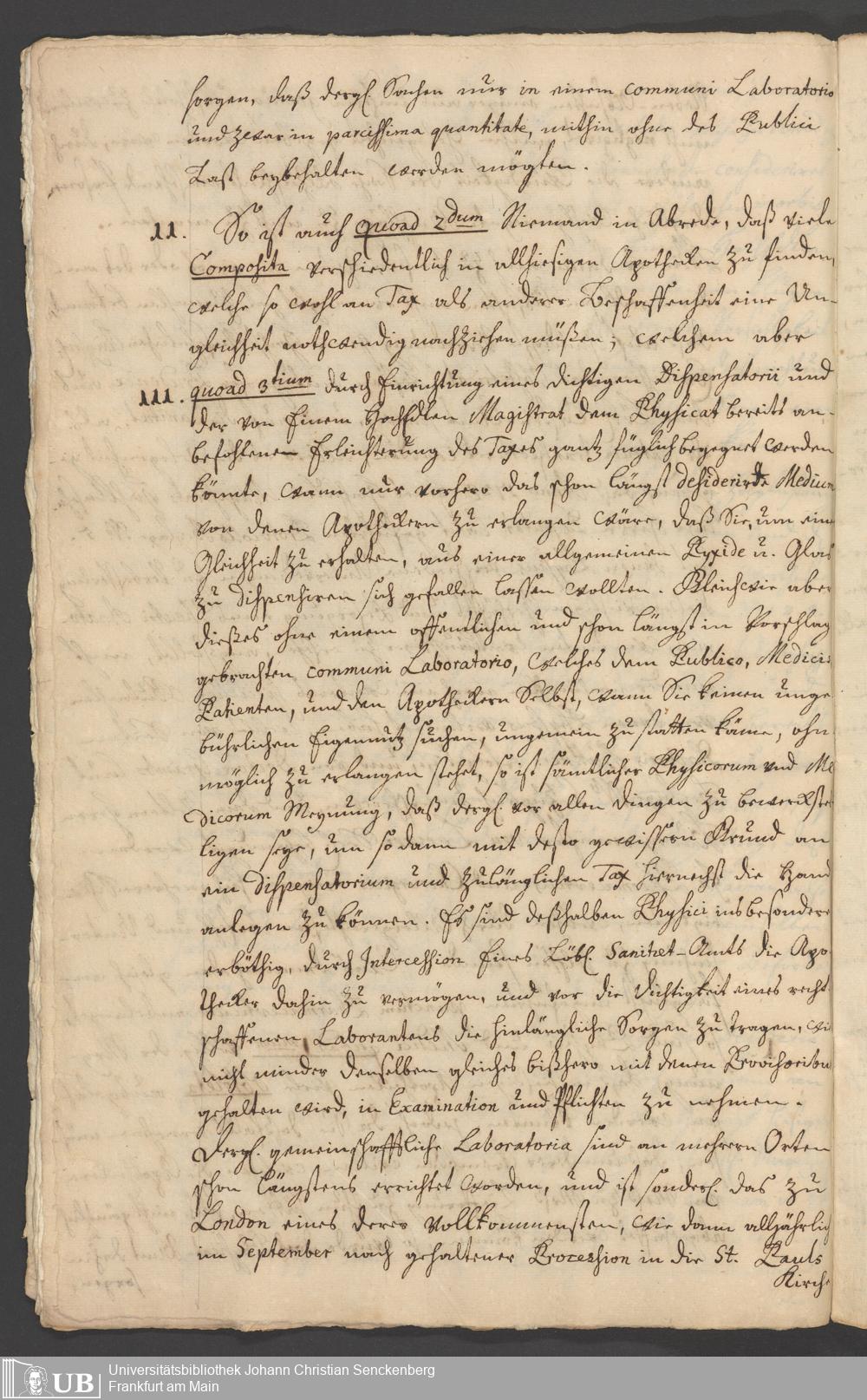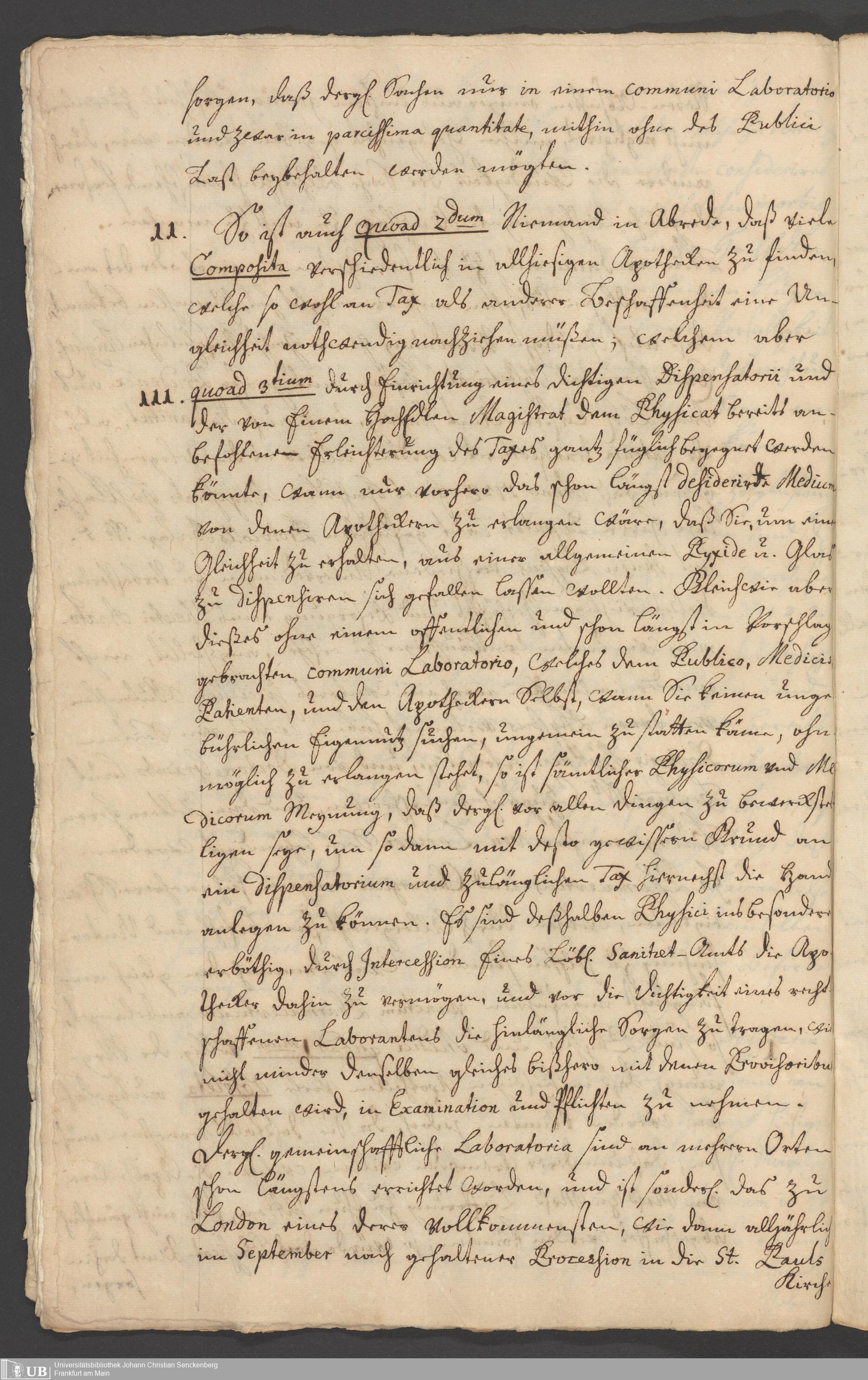 Na 31 Nachlass Johann Christian Senckenberg, 294 - Vorschläge und Gutachten zur Verbesserung des Medizinalwesens in Frankfurt