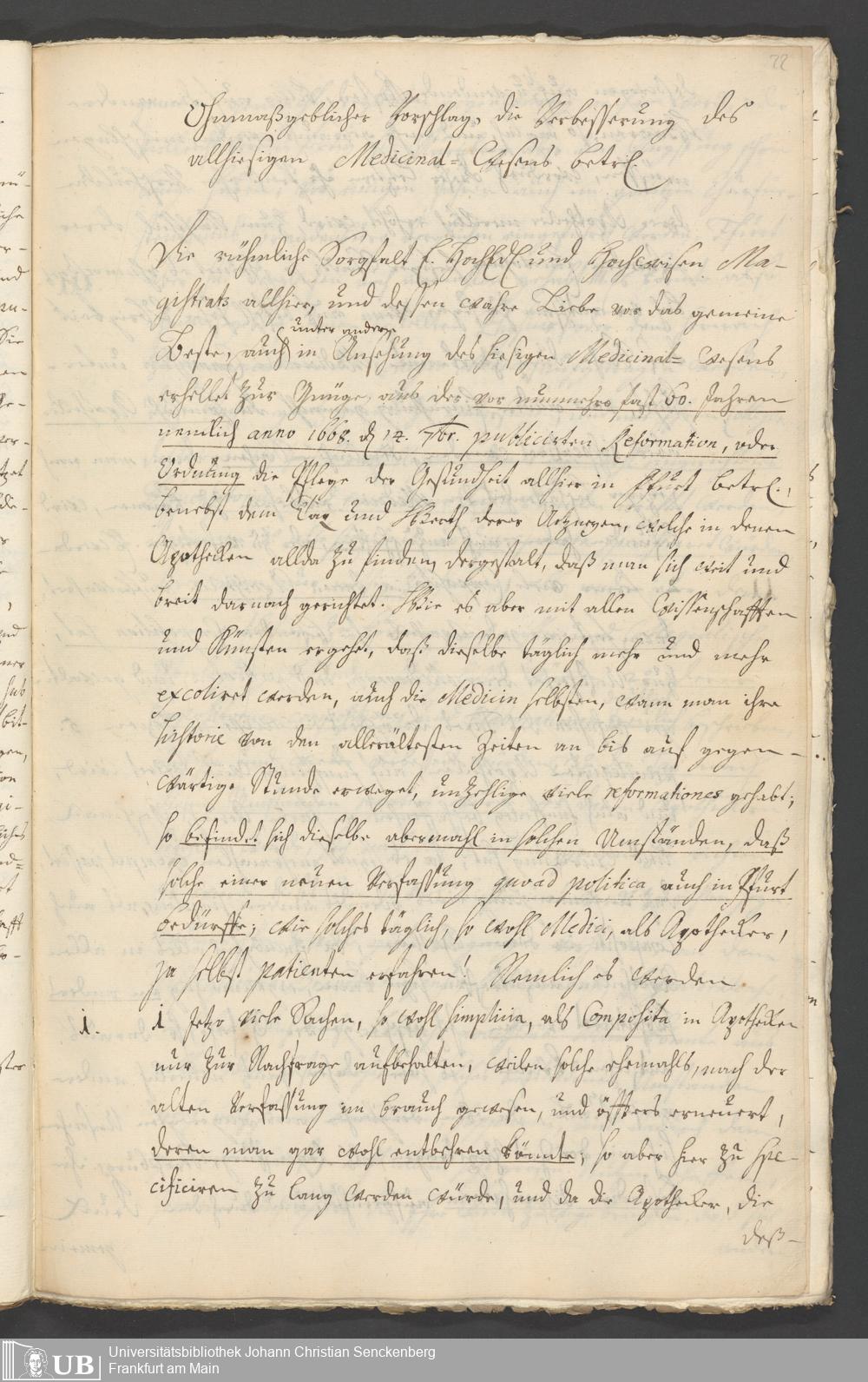 Na 31 Nachlass Johann Christian Senckenberg, 294 - Vorschläge und Gutachten zur Verbesserung des Medizinalwesens in Frankfurt