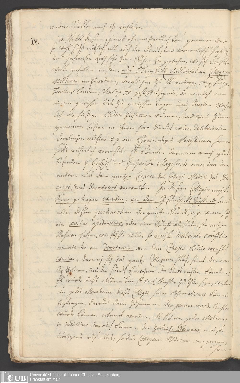 Na 31 Nachlass Johann Christian Senckenberg, 294 - Vorschläge und Gutachten zur Verbesserung des Medizinalwesens in Frankfurt