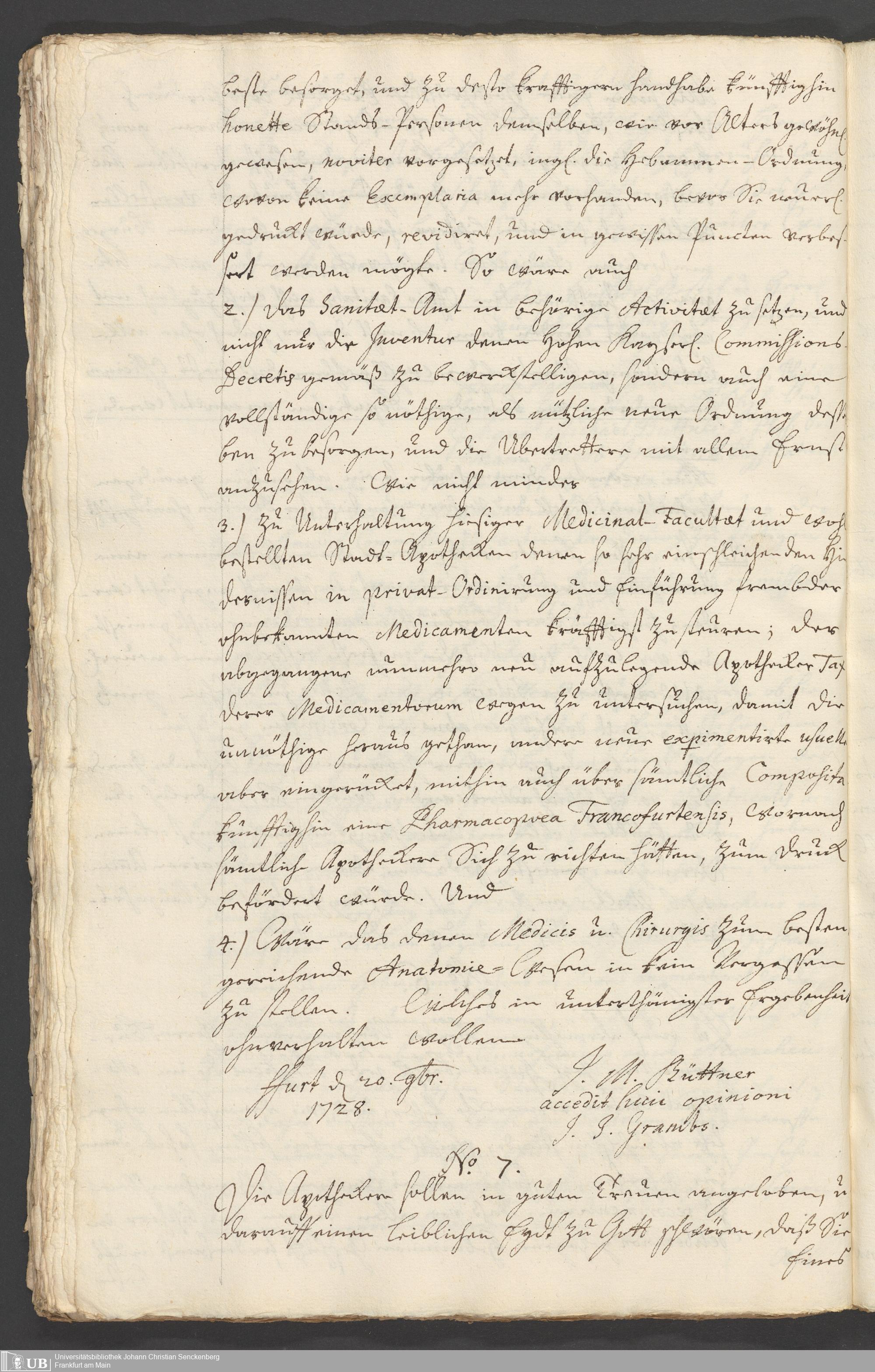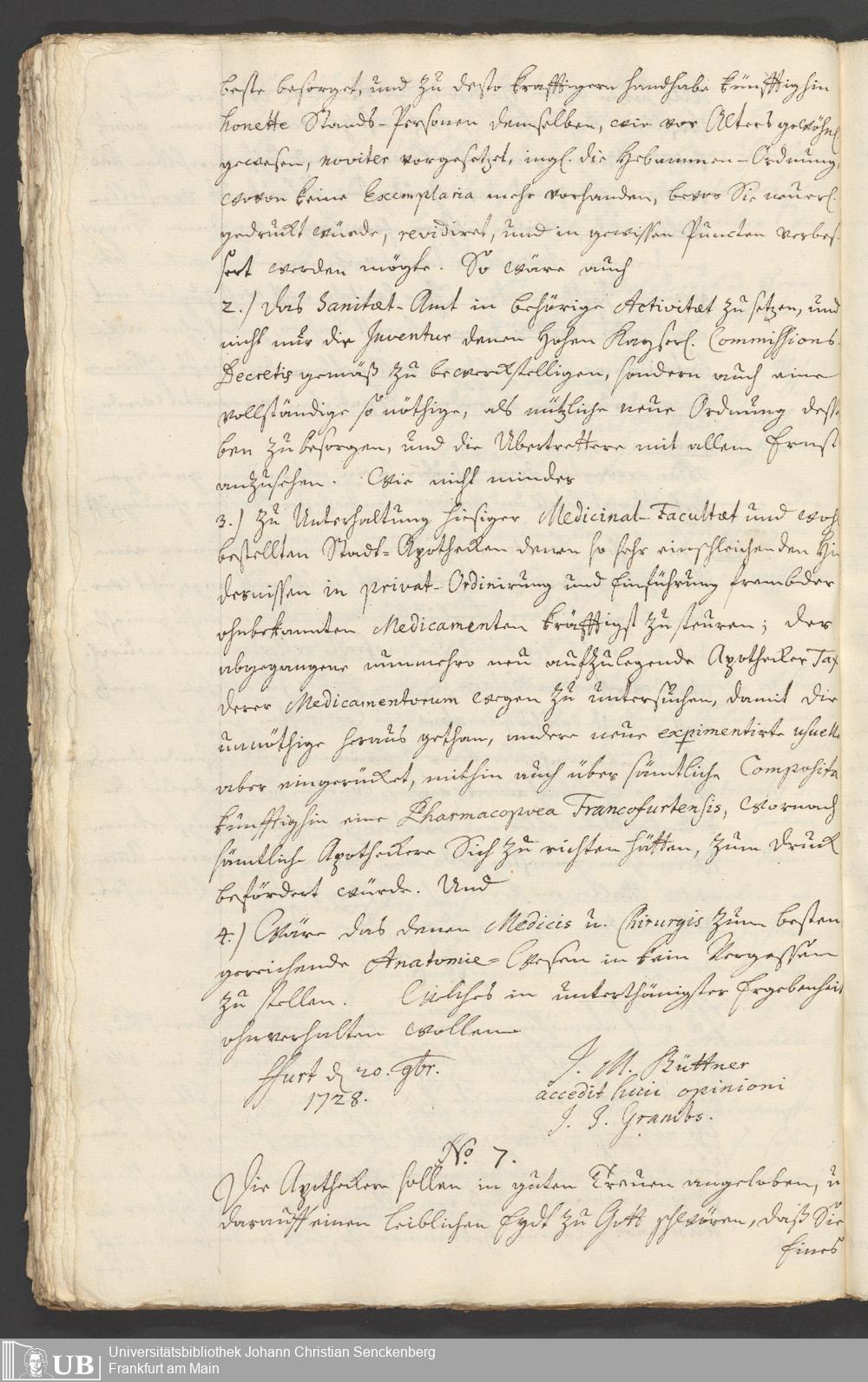 Na 31 Nachlass Johann Christian Senckenberg, 294 - Vorschläge und Gutachten zur Verbesserung des Medizinalwesens in Frankfurt