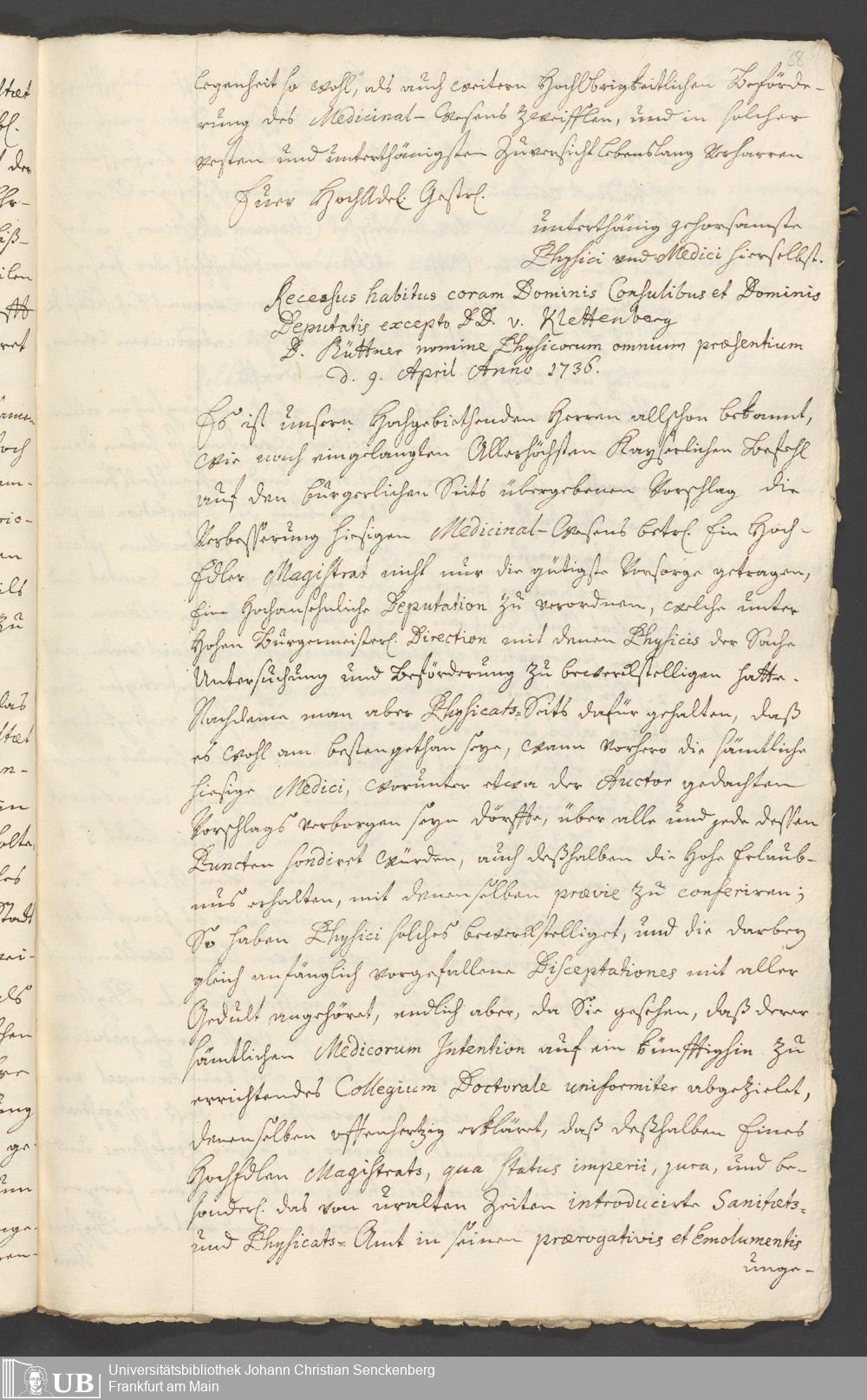 Na 31 Nachlass Johann Christian Senckenberg, 294 - Vorschläge und Gutachten zur Verbesserung des Medizinalwesens in Frankfurt