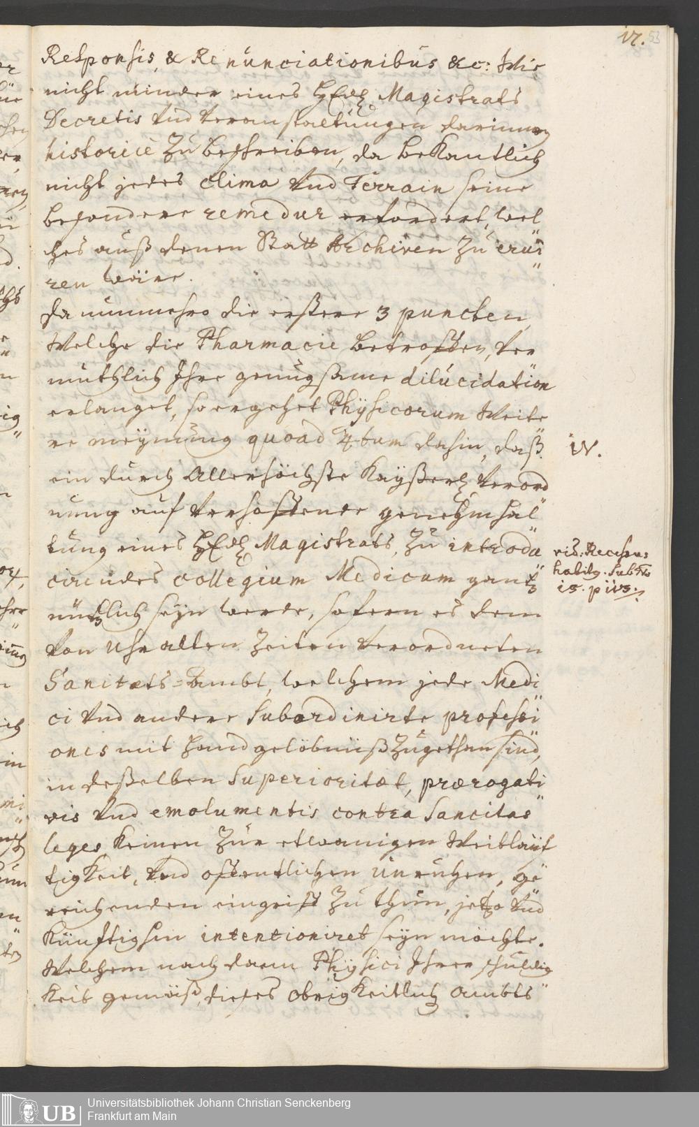 Na 31 Nachlass Johann Christian Senckenberg, 294 - Vorschläge und Gutachten zur Verbesserung des Medizinalwesens in Frankfurt