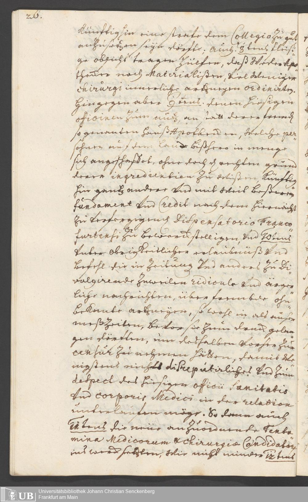Na 31 Nachlass Johann Christian Senckenberg, 294 - Vorschläge und Gutachten zur Verbesserung des Medizinalwesens in Frankfurt